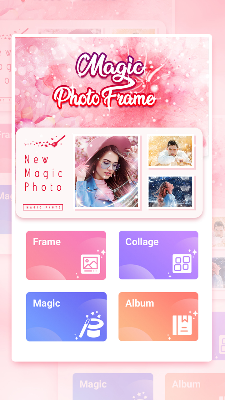 - Trendy photo frames in many themes: Love, Birthday, Friends, Posters, Food, Family, etc. - Frame photo containing from 1 photo to 5 photos. - More than 1000 cute stickers which are popular among young people. - The trending and lovely words arranged in topics which are integrated into very beautiful stickers - Provides multiple collage layouts, based on the user's number of photos to smartly provide compositions. - Magic effects added in photos. Let’s turn your photos into the ones taken by a professional photographer. Photo Frame, Magic Photo Collage is a completely free application that gives you many options to create a stylish and creative photo with a variety of cute photo frames (Frames), collage art (Collage), edit and add magic effects to the photo (Magic). With the main target on photo frames and magic effects, you should immediately download Photo Frame, Magic Photo Collage to have a lot of options and create photos your own style. ★ Featured features: + Frames by number of photos: single photo frame, double photo frame, triple photo frame, four photo frame, and five photo frame + Frames by themes: love frame, friend frame, family frame, poster frame, happy birthday frame, food frame, etc. + Totally free photo Frames, varied by themes. You will have more frame options while using the application. Let’s experience Photo Frame, Magic Photo Collage now. + Collage: Arrange your photos into a layout to help you emphasize the topic to tell a more meaningful and interesting photography story. The app provides users with free grid patterns and different layouts. + Magic: contains a lot of effects in magic and sparkle style, which can make your photos immediately alive. + Select one or more images from your gallery or camera + High resolution quality image. + Easy to use professional photo editing tools and bright interface. + Many ‘super cute’ stickers. + Many different fonts, customized colors. You can enter some text or use our available sentences to let your pictures tell your story. + Many unique photo filters and photo effects. + Edit each picture in the frame: Swap, rotate, filter, flip, etc. + There are many lovely layouts for the art of collages. + Flexible and varied layouts for your images to create your own unique frames. + Draw on pictures the motifs or shapes you want, customize the color for the drawing. + Share pictures with your dear friends through your favorite apps like Facebook, Twitter, Instagram, Email, etc. Let's download and experience Photo Frame, Magic Photo Collage to discover trendy frames. The frames will keep many beautiful memories in your life. We hope you will have great moments of experience with Photo Frame, Magic Photo Collage. Please rate us with 5 stars and leave a positive review on Google Play store. If you find any technical problems using the app, please feel free to email or give us comments on this issue.