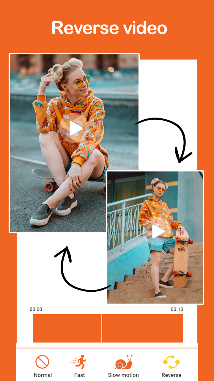 - Video Speed Control: interestingly speed up, slow down your videos for great moments.