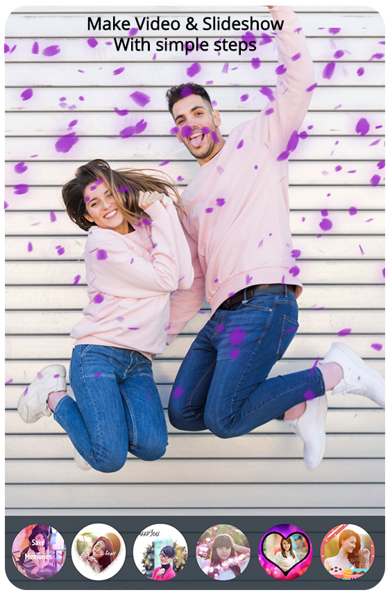 Easiest tool app that you can make video of photos with free music, magic touch, theme effects and movie effects . Editing video with video effects & music make photo music videos.