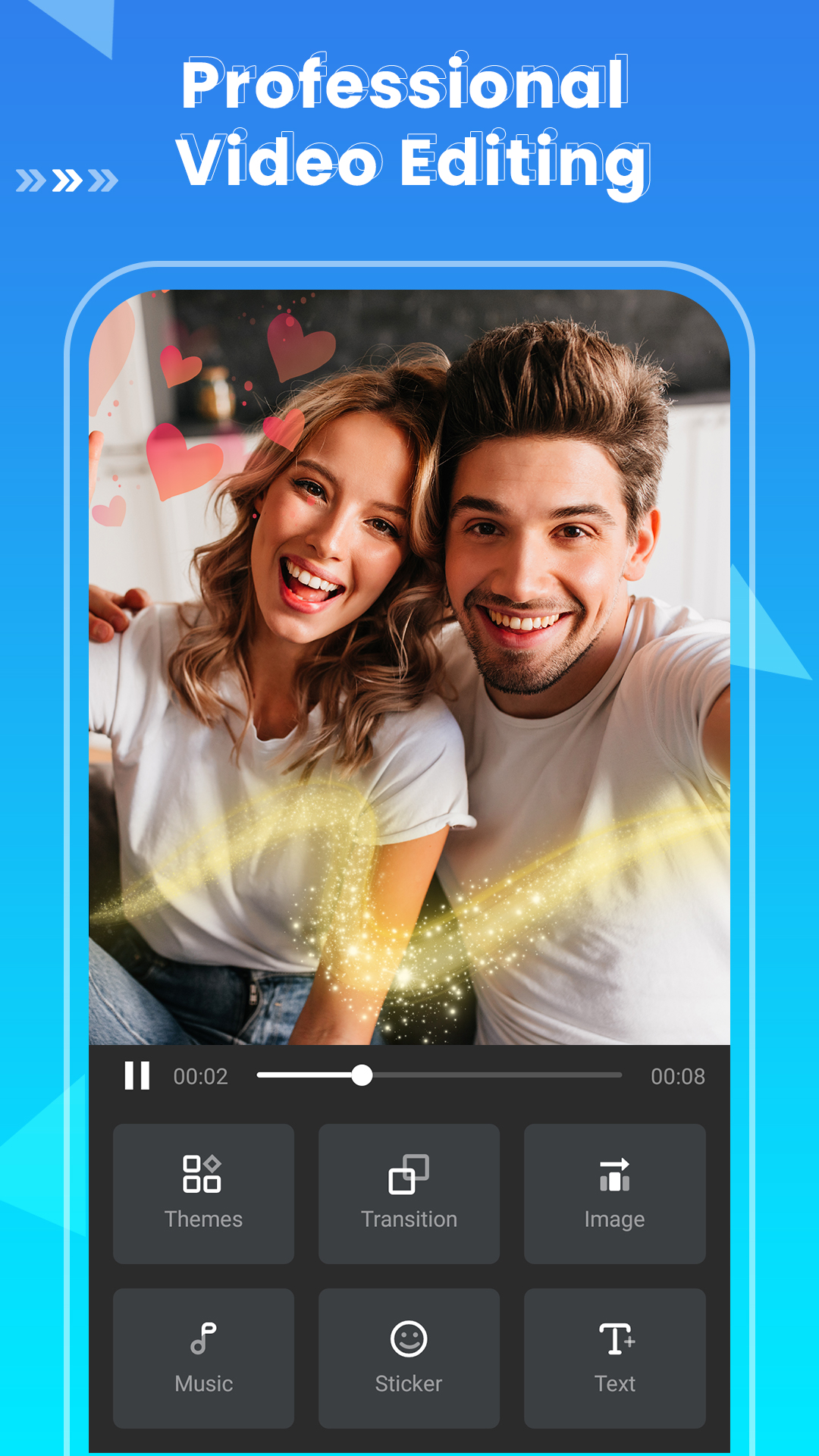 v5.3: update theme & fix bugs. -- v5.1.2: bug fixes. -- v5.1: Improve HOME UI/UX -- v5.0: Major updates - add more video effects, video themes - new UI/UX - support templates to create videos - fast and small export videos