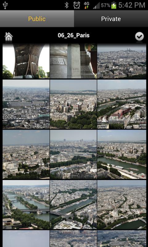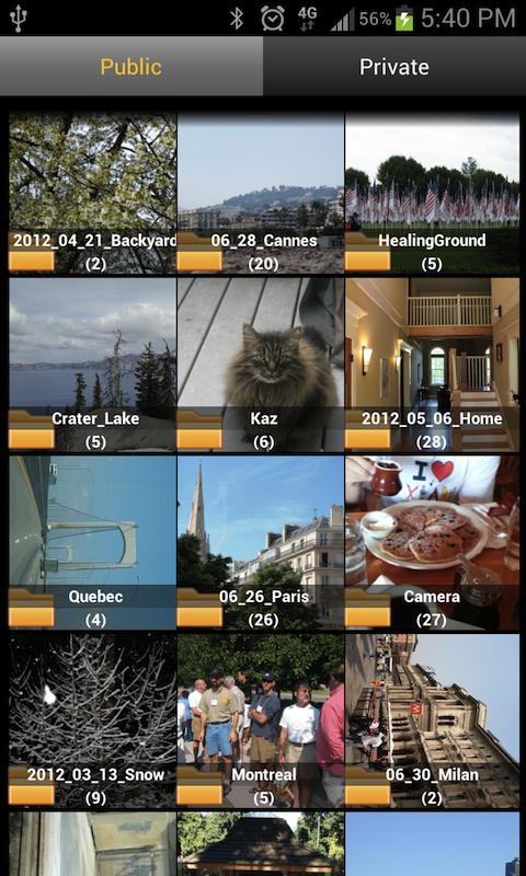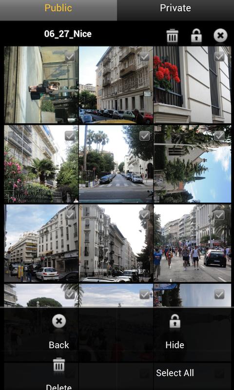 You, of course, have complete access to the photos in your Private gallery. You can manipulate them; share them via e-mail, messaging, Facebook, and other social networks; give a slide show; and more. You can do anything with them that you can with those in the Public gallery. The photos are easily transferred from Public gallery to Private gallery and back again with just a long-click on the photo's thumbnail.