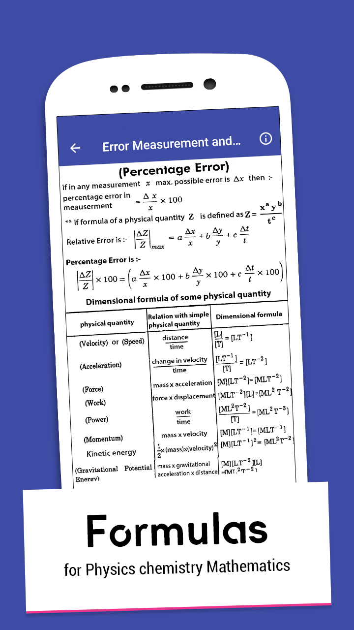 Download our FORMULA APP and carry pocket handy formula sheet for maths, physics and chemistry all in the same app, with calculation for necessary formulas.