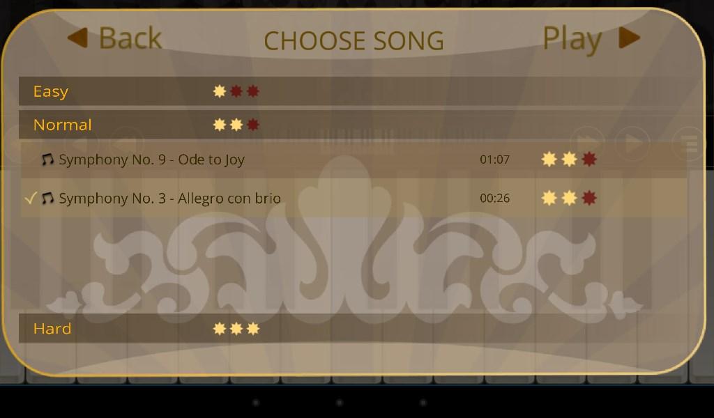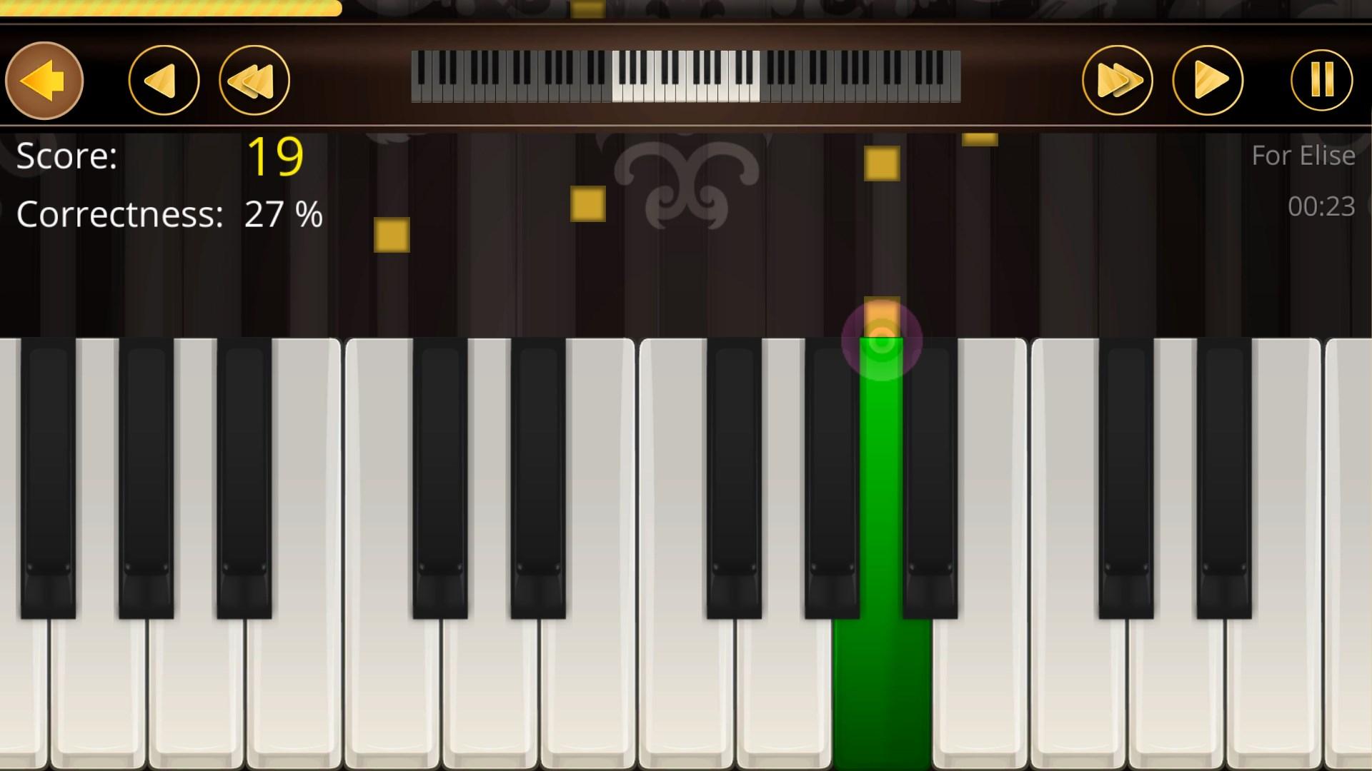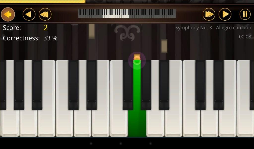 In Career Mode you have to choose a song from the list and click the play button. Click on the highlighted blue keys and play the whole song! The application will rate your performance. Become a champion and get 100% for each played Piano Beethoven!