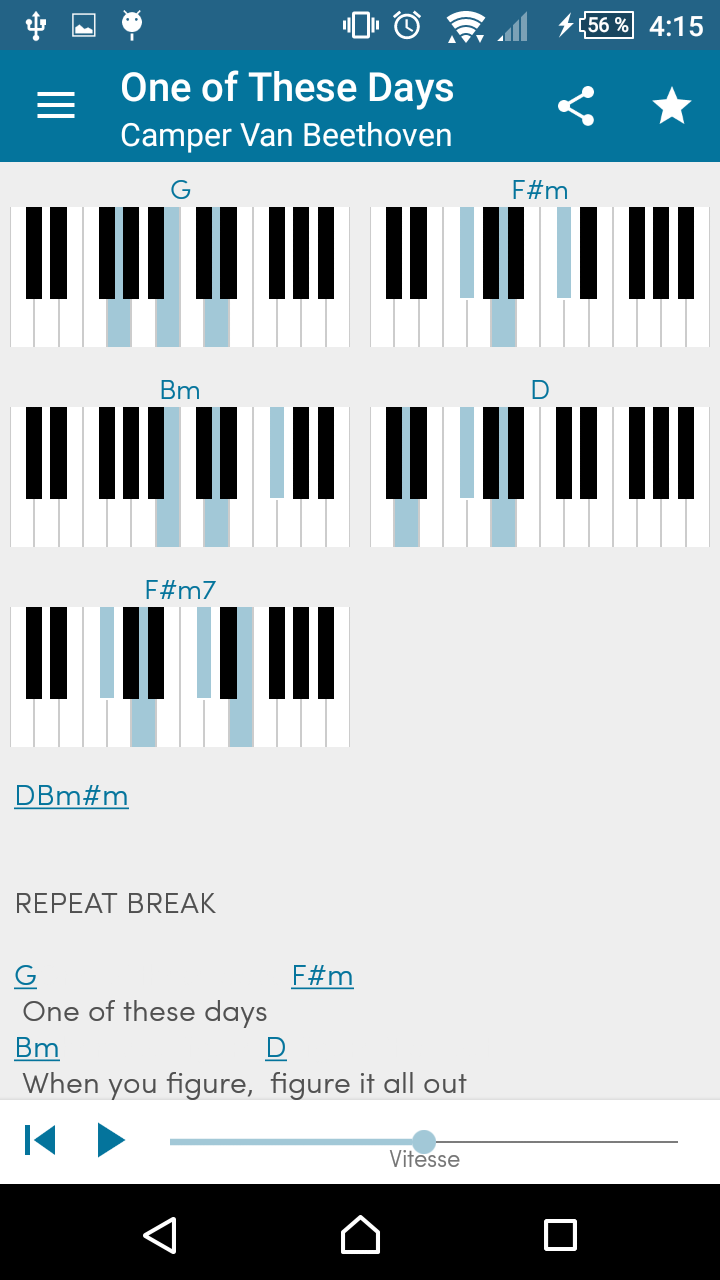 • Auto-scroll to scroll automatically the chords & lyrics the speed you want