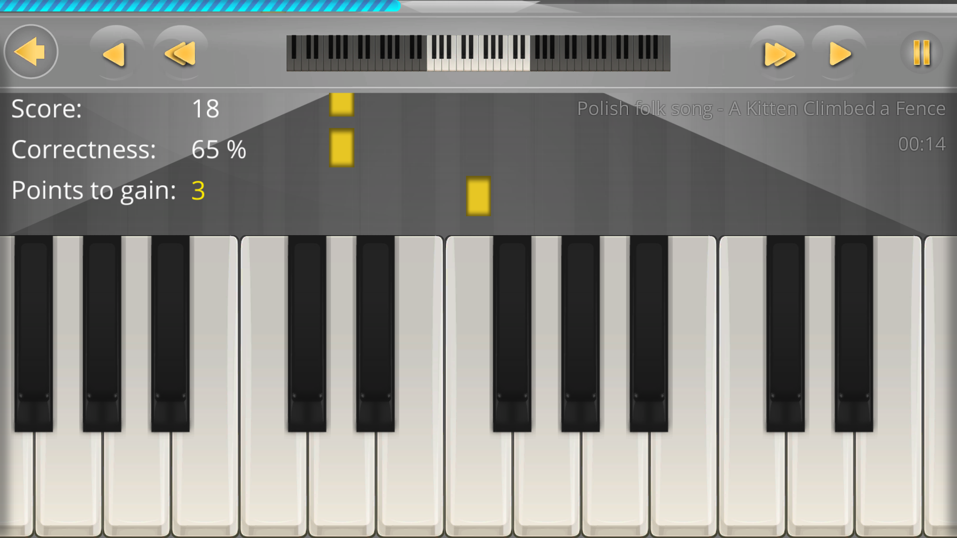 The application can also be used as a piano without learning mode. You can set the amount of visible piano keys from 8 to 16. If it is more comfortable for you, set the key signature. You can also turn on the metronome.