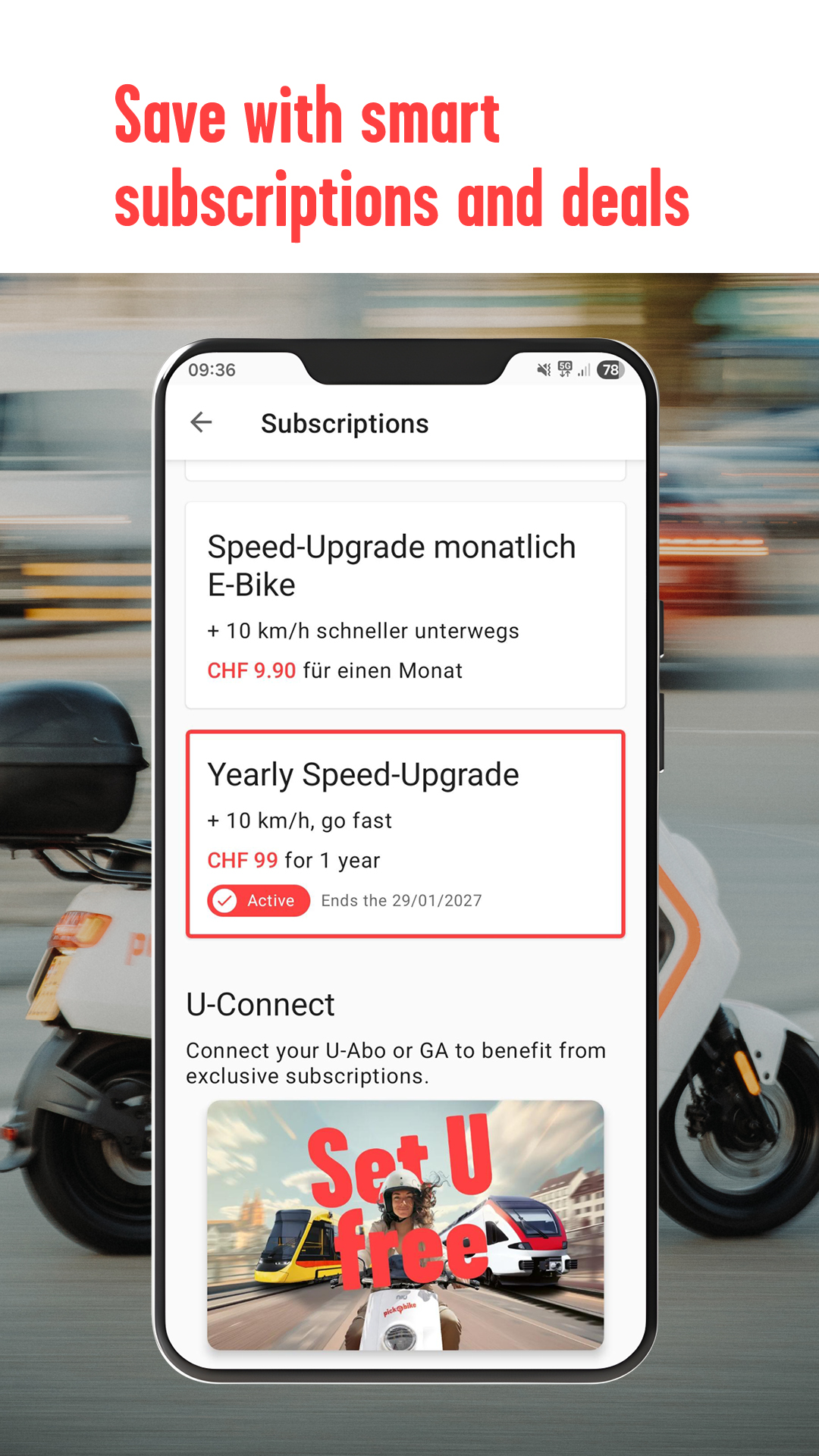 Rent next generation E-Bikes in your area with the Pick-e-Bike App. For registration you need a passport, a valid driver's license and credit card. You don't need any keys or cards to open and start the vehicle. Everything works perfectly with the App. Pick-e-Bike is a free-floating sharing system, so you don't have to park the Bikes at a station. You can park your Bike anywhere you want in the Pick-e-Bike-Zone, regarding the parking regulations. With Pick-e-Bike you pay per minute of usage. It's that easy: 1. Downloading the App and registration: The registration is for free. All you need is a passport, a valid driver's license and credit card. We'll check and confirm your data as soon as possible. 2. Reserve vehicle: You can reserve your vehicle for 15 minutes, to make sure, that you have enough time to catch it. 3. Start rental: You can unlock the vehicle and the topcase with the App and start the rental. 4. Helmet on and go: Don't forget to put the helmet on, it's mandatory and necessary for safety reasons. Now your all set and ready to feel the unique driving experience. 5. Parking: You can park the vehicle anywhere you want in the Pick-e-Bike-Zone, regarding the parking regulations. 6. Stow helmet: Don't forget to stow the helmet in the right place. 7. Close rental: Lock the Bike and your rental is completed. Any questions? Check out: https://www.pickebike.ch/FAQ