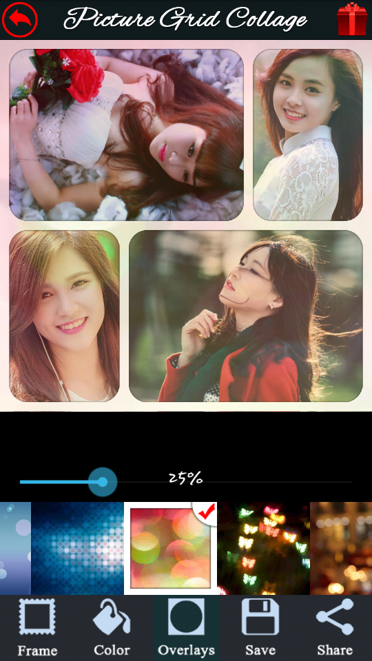 Picture Grid Collage is the latest photo collage maker, very professional, total FREE 100%. Picture Grid Collage is the best collage maker and photo editor that helps you combine multiple photos with various frame layout and grid frames then share them at a time! Picture Grid Collage with a friendly interface, simple design, easy to use: with just a few simple steps as select frame, select images, rotate, zoom in, zoom out, move, save that you have a extremely artistic photographs. Application Picture Grid Collage helps you share photos with friends via popular social networks: Facebook, Instagram, Twitter, Picasa, G+, Email, SMS, Zalo, v.v… In addition Picture Grid Collage also allows you to set picture as live wallpaper on app with meteor shower effects and falling star effects extremely beautiful and romantic FEATURES: - Nearly 100 grid frames with style square frames in different aspect ratio - Easy to collage and make photo grid - Choose the images from gallery or take picture from your camera - Move, zoom in, zoom out, pan around the image to fit the frame - Auto save photos to sdcard/Picture_PictureGridCollage/ and show them in gallery - Share photo via social networks : Facebook, Instagram, Twitter, Picasa, G+, Email, SMS, Zalo, v.v… - Set photo as live wallpaper with falling stars and meteor shower effects - Totally FREE 100%, NO SMS Just download Picture Grid Collage to have moments of relax extremely fun and exciting!