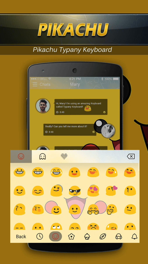 The Pikachu keyboard theme is specially designed for Typany Keyboard users.