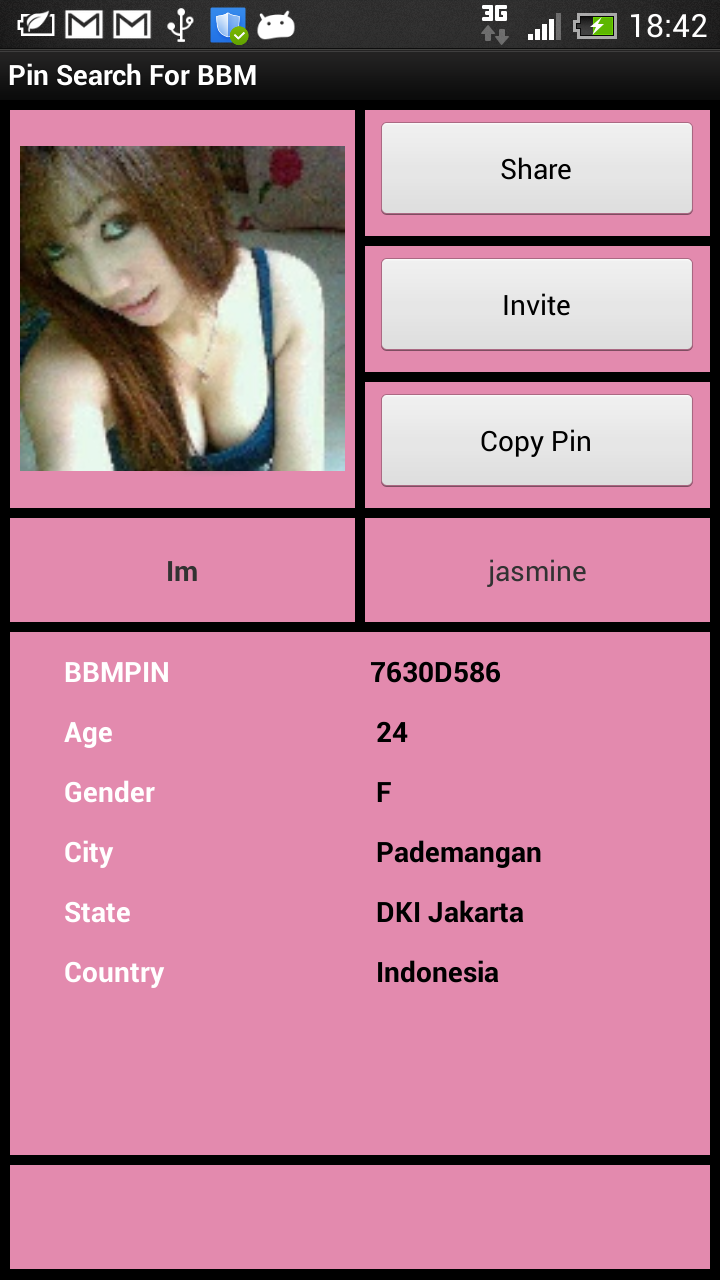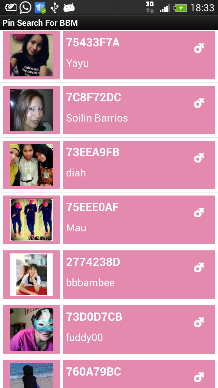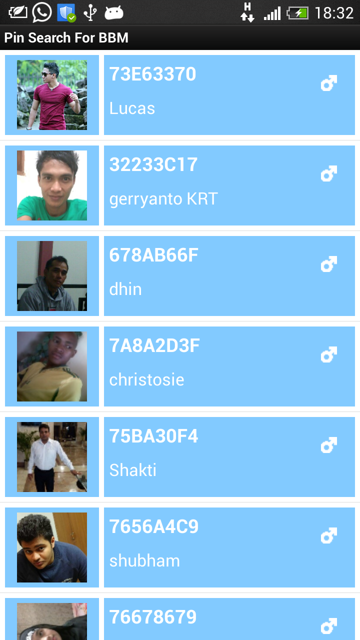 Pin Search For BBM :Includes BBM Pin from all our the world. Largest Database of BBM Pins : More than 1000000+ BBM Pin from all our the world. Shake your phone to find BBM pin nearby. This is best BBM Pin Search or BBM Pin Finder for BBM from where you can search BBM Pin and add them. Feature: Shake to find friend / find BBM Pin Add BBM Pins to your BBM. Search Female BBM pin Search Male BBM pin Search BBM pin by country Disclaimer : PLEASE NOTE , This app is not affiliated with Blackberry Limited (Creators of BBM ) for BBM Android. It is Unofficial App and if you are interested in BBM please visit bbm.com and find out when BBM Messenger is available on android.