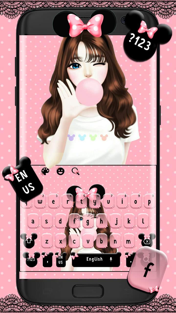 Pink Love Bow Girl Keyboard Theme