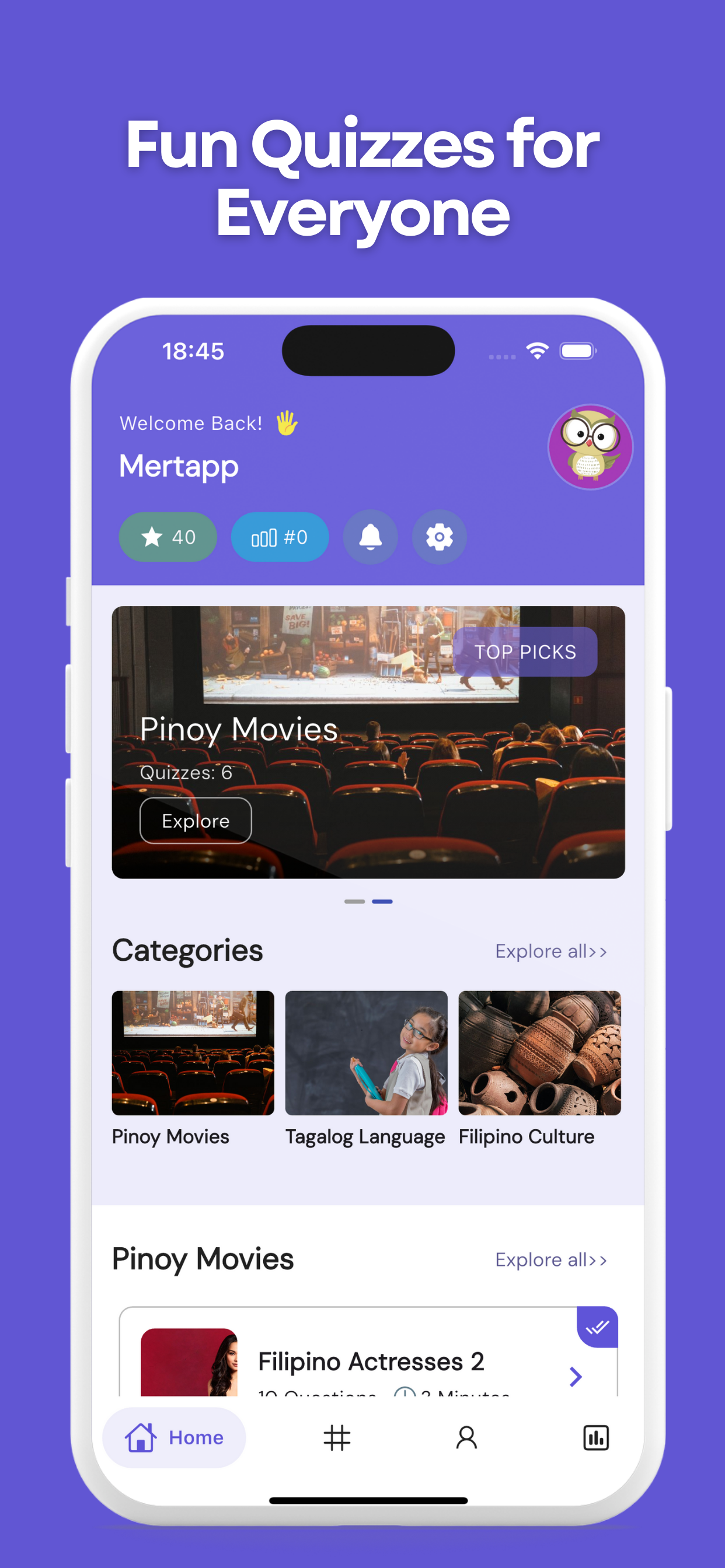 Pinoy Quiz (Package Name: mertapp.pinoyquiz) is developed by Mertapp and the latest version of Pinoy Quiz Game 4.0.0 was updated on January 1, 2026. Pinoy Quiz Game is in the category of Entertainment. You can check all apps from the developer of Pinoy Quiz Game and find 20 alternative apps to Pinoy Quiz Game on Android. Currently this app is for free. This app can be downloaded on Android 7.0+ on APKFab or Google Play. All APK/XAPK files on APKFab.com are original and 100% safe with fast download.