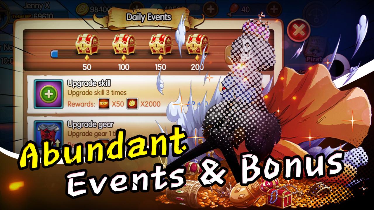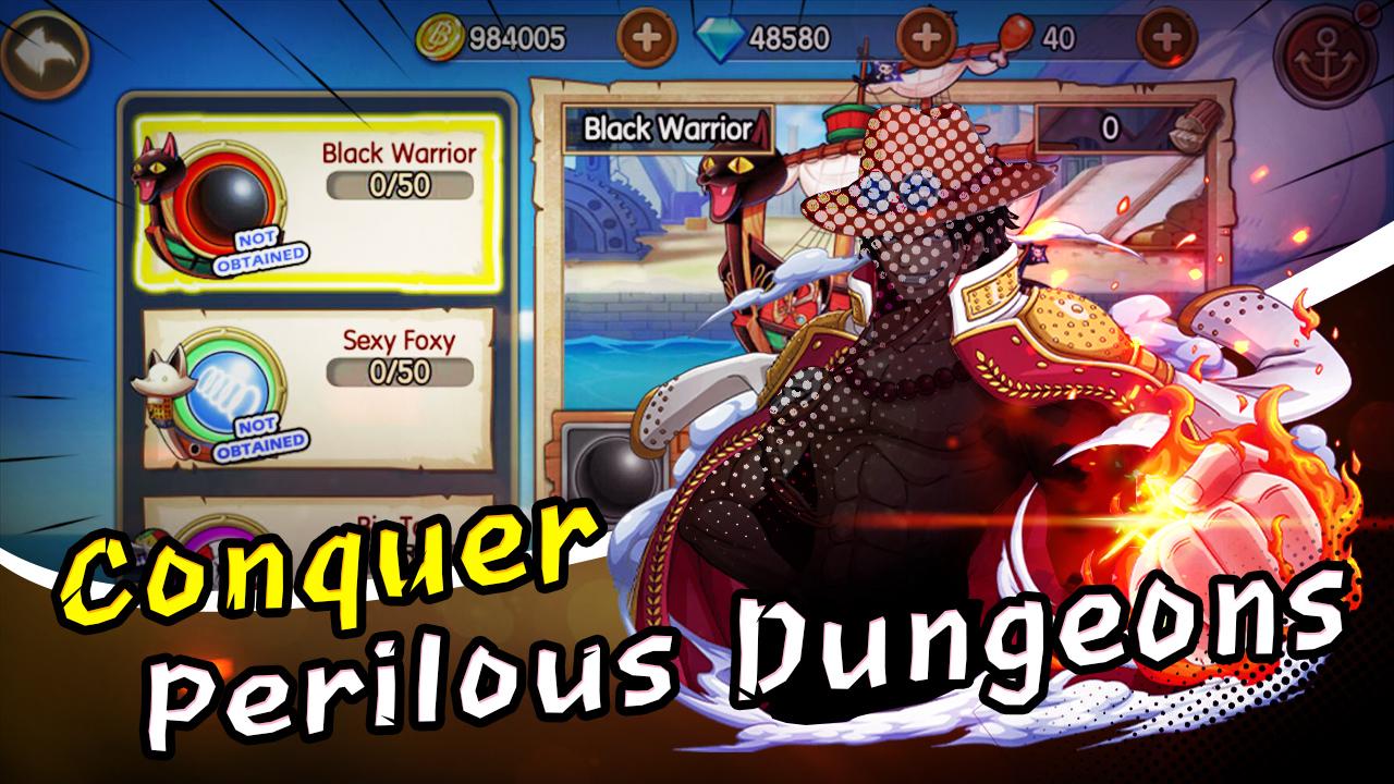A new action RPG mobile game features a pirate story, along with unique characters and stunning visual effects. Take your pirate crew on an RPG adventure and challenge players from all over the world now! ◎Collect Heroes & Create Ultimate Lineup◎ Over dozens of characters and hundreds of skills to choose from, build your ultimate lineup with different roles and make your team invincible! ◎Perfect Your Strategy & Challenge Bosses◎ Challenge demonized dungeon bosses and stand a chance to get epic loot chests! ◎Legendary Arena Battles◎ Equip heroes with powerful weapons and unlock all their skills and abilities. Dominate the battlefield and become the Master of the Arena! ◎Gather Your Alliance & Fight for the GLORY!◎ Call up the best players on the server and establish your own guild. Draw your weapons when the war starts! ◎Abundant Gifts & Bonus◎ Daily FREE diamonds, EPIC heroes, Event Bonus and much more Gifts are waiting for you to explore!