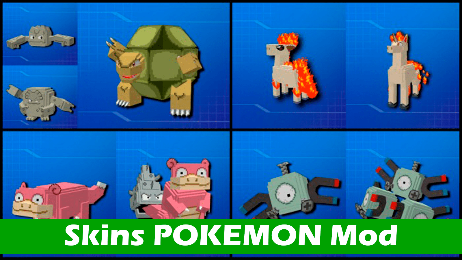 Pokemon Go Games Minecraft mod: units skins in minecraft mod games Poke Craft! modification introduces 39 Pokemon from the universe of the same name to Minecraft. ☀️ In addition to the Pokémon themselves, the mod also introduces many items and buildings associated with this universe. Each of the creatures can be tamed, and besides this, each of them has the ability to evolve and develop strength. ☀️ You can tame the Poké and use it to fight other Pokés. ☀️ How do you get your Pokemon? You need to collect three apricots, fry in the oven and create a red disk, from which you can craft a Pokeball, with which you can tame your Pokemon. ☀️ First, we look for the desired creature and take the pokeball in our hands. A button will appear on the screen when you hover over a mob - press the button to get a Pokemon. In a device called the Pokémon Center, the player will select the desired Pokémon to place in their Pokéball. When fighting an enemy Pokemon, the player needs to point to the center of the screen and click on the pop-up window. Your Pokémon and the enemy Pokémon will start a battle in which you can help your allied Pokémon. Each of them can be improved to the tenth level with the help of special sweets. For example, Bulzaur on the third level will become Ivizaur, and on the fifth level - Venusaur. ☀️ Each has a detailed model and its own unique animation. 📢 One of the Best Free Mods for Minecraft - Pokemon Go Game for MCPE Pokedex Pixelmon Table: ➡️ ===> Bulbasaur ➡️ ===> Ivizaur ➡️ ===> Venusaur ➡️ ===> Charmander ➡️ ===> Charmilion ➡️ ===> Charizard ➡️ ===> Squirt ➡️ ===> Wartortl ➡️ ===> Blastoise ➡️ ===> Caterpie ➡️ ===> Metapod ➡️ ===> Widl ➡️ ===> Kakuna ➡️ ===> Ekans ➡️ ===> Erbock ➡️ ===> Pikachu ➡️ ===> Raichu ➡️ ===> Jigglypuff ➡️ ===> Zubat ➡️ ===> Golbat ➡️ ===> Oddish ➡️ ===> Diglett ➡️ ===> Dagtrio ➡️ ===> Meowth ➡️ ===> Polivag ➡️ ===> Machop ➡️ ===> Magnemite ➡️ ===> Drowsy ➡️ ===> Hypno ➡️ ===> Voltorb ➡️ ===> Electrode ➡️ ===> Hitmonly ➡️ ===> Old ➡️ ===> Starmi ➡️ ===> Mr. Mime ➡️ ===> Mewtwo ➡️ ===> Mew ➡️ ===> Celebi ➡️ ===> Rayquaza ➡️ Install Pokemon Go Duel Tips Addon for Minecraft! Get a Guide BONUS! 👍👍👍 ➡️ 📢 Disclaimer: SkinPack MCPE Pokemon Emulator is not the official game app from Mojang. Textures for MINECRAFT PE are not affiliated with Mojang AB. New Pixelmon Game Mod for Minecraft MCPE PE World