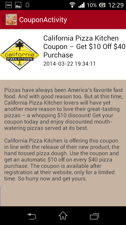 Pizza coupons