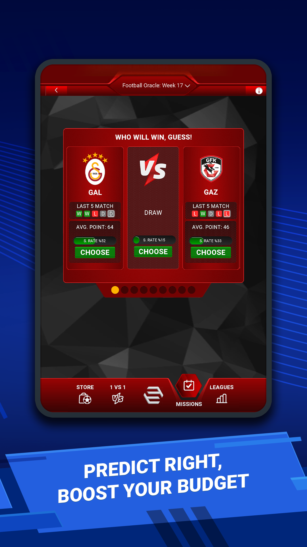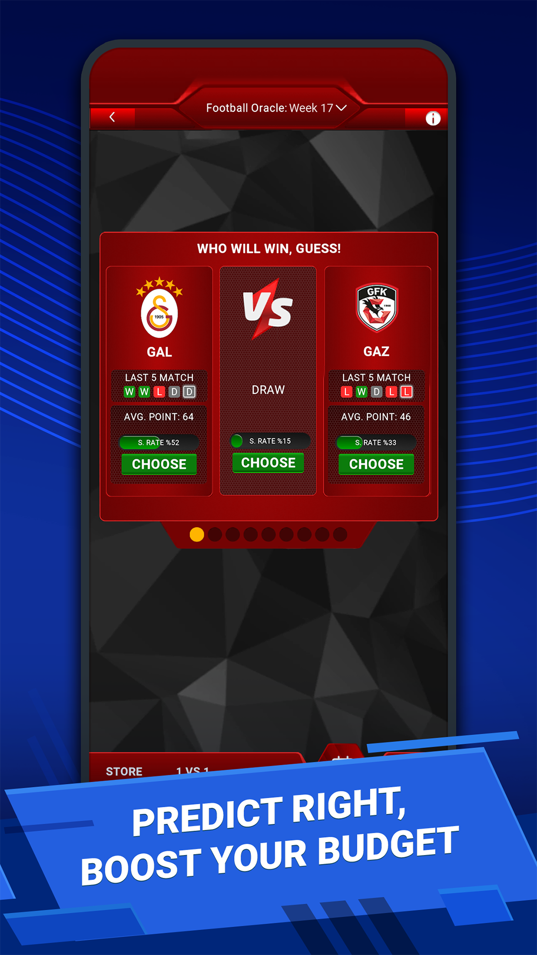 - Football Oracle: The match prediction screen is completely renewed. You can now see teams’ past performances. Predict the winning teams of the week based on your Sosyal Lig score — go 9 for 9 and win!