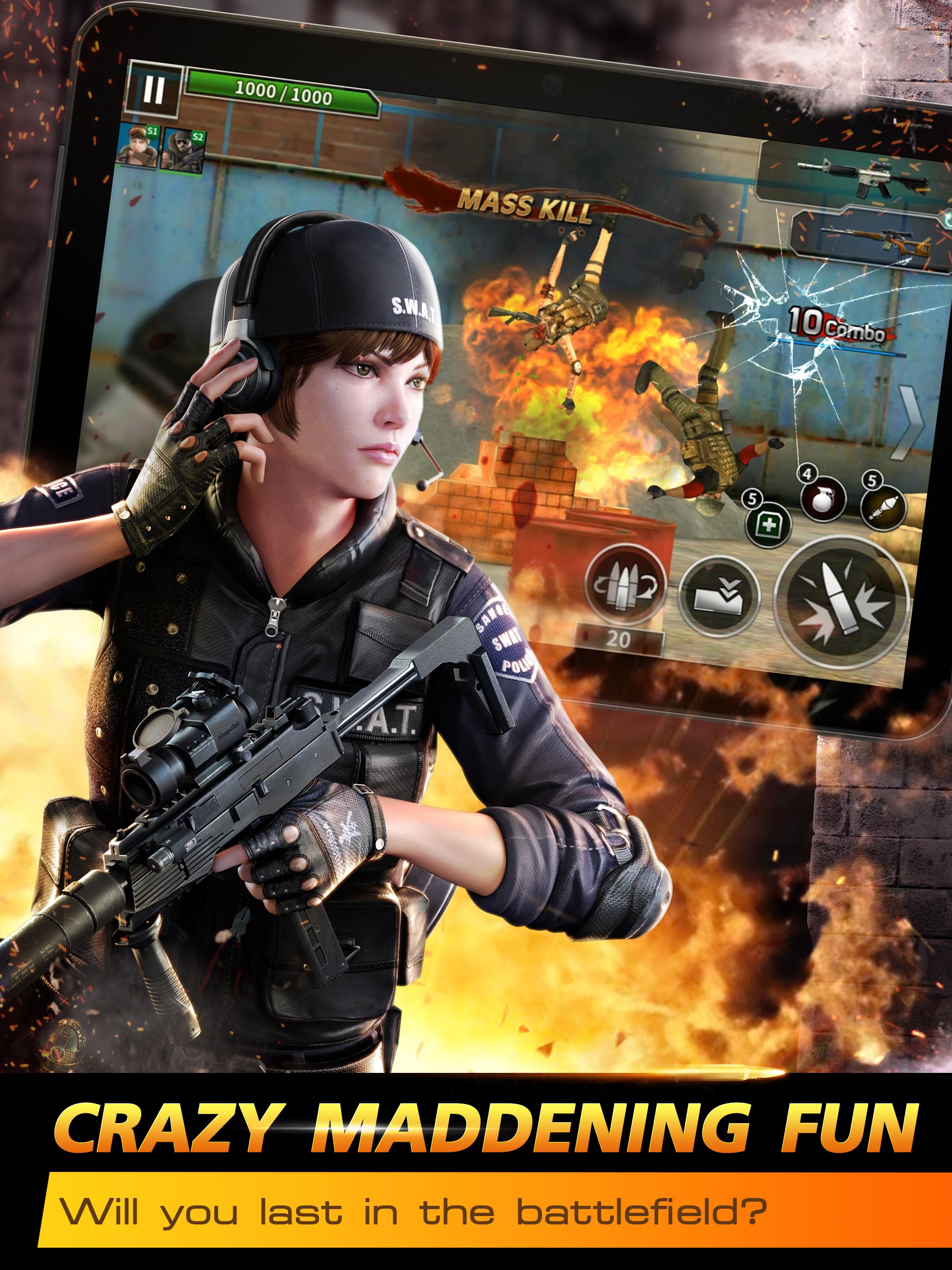 1.Invite your friend to battle in PVP 2.New weapons design, special for Christmas! 3.Cool Santa suit for male and female players. With more special effect on Grenade and RPG. 4.PVP New maps with Christmas weapon drop reward! - Winter Town map (special drop Christmas weapon from Now - 5 Jan 2017) - Garden of Dragon 5.New maps Challenge mode - UpTown - Water Complex 6.Get the chance to win iPhone 7, by joining Medal event from Now - 5 Jan 2017! Special for truemove user only!