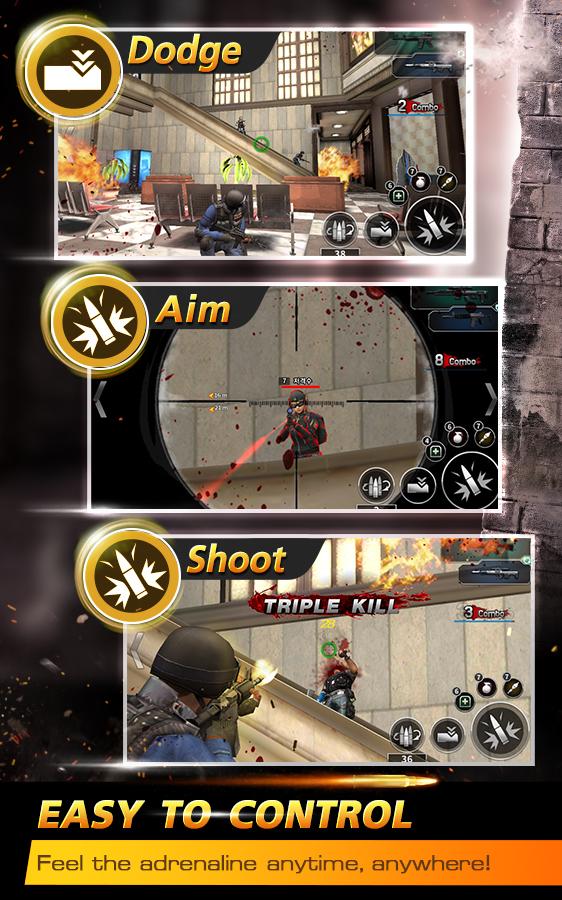 Play now using Facebook / TrueID / Gmail / Goodgames ID or Register your game ID by using truemove H. Just dial *871*4# to get free SMS! Have your still remember those excellent/incredible skills Chain Killer!! Triple Kill!! Fire In The Hole!!, with the most famous legendary Library Map including supper Kriss Super V Gun and top of series – AUG gun. Are you ready to surpass the limitation that you have had with the game on PC and enjoy the better experience on mobile device, no more limitation. Everything are under control of your fingertips – Point Blank Mobile, excitement & enthusiasm come from your fingers. Available with various modes, along with the awesome graphics and sounds will bring you the most realistic battlefield ever. -- Top features in game -- ## Game play ## Modes in game -PVP Mode: Compete in real time with friends and other players worldwide by single/individual or team (1vs1,2vs2 ,4vs4) -Story mode: Challenge/adventure each stage of the story and conquer the superb Boss -Survivor/ Raid / Challenge: Numerous special missions to hunt premium weapons rewards and rare items. ## Open e-Sports tournament globally! ## with real cashes as rewards and exclusive rare items. To become professional player/athletes domestically and internationally!!! ## Tons of military weapons and other tools ## Realistic usage of weapons, as right as real life. Numerous usages of the weapons, one of a kind, not a general common weapons. Not only with the famous reputation of Point Blank as M4A1 but also numerous famous guns Rifle, Sniper, SMG, HMG, Shotgun ## Choose the fashion styles of your choices ## Players will freely mix and match fashion suits of your choices as much as guns. ## Easy shooting by your finger ## Beautiful graphics and easy/simple to control that never have had in other games. Able to upgrade skills of character and guns as your wishes, modify and upgrade any part of guns up to the best of its potential. ## Languages ## Game system are available in various languages in games including: Thai, English, Chinese, Indonesia, Vietnam and Korean to welcome international players in different countries.