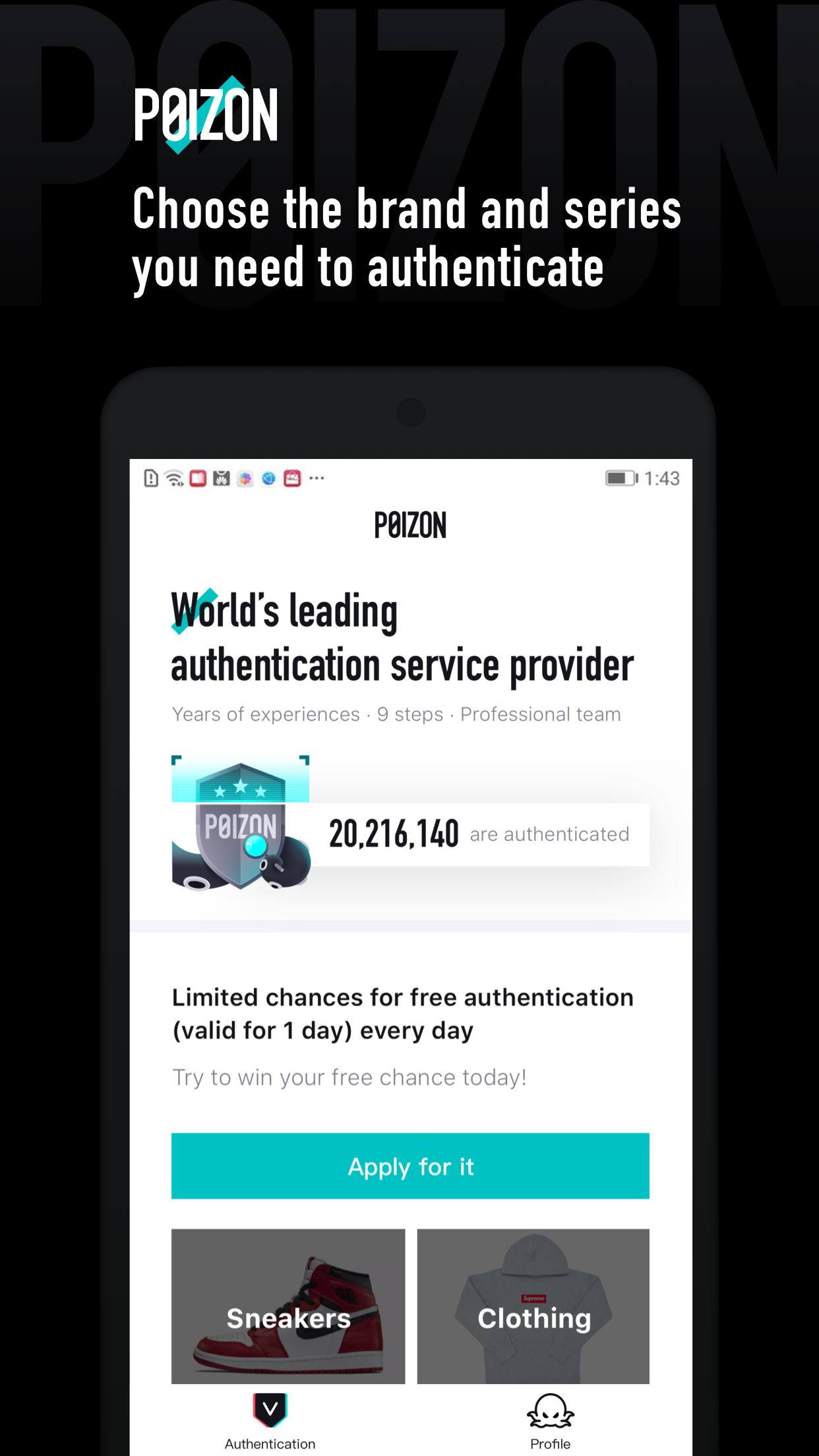 POIZON (Package Name: com.shizhuang.poizon) is developed by POIZON (HONGKONG)Limited and the latest version of POIZON 1.1.0 was updated on August 28, 2019. POIZON is in the category of Sports. You can check all apps from the developer of POIZON. Currently this app is for free. This app can be downloaded on Android 5.0+ on APKFab or Google Play. All APK/XAPK files on APKFab.com are original and 100% safe with fast download.