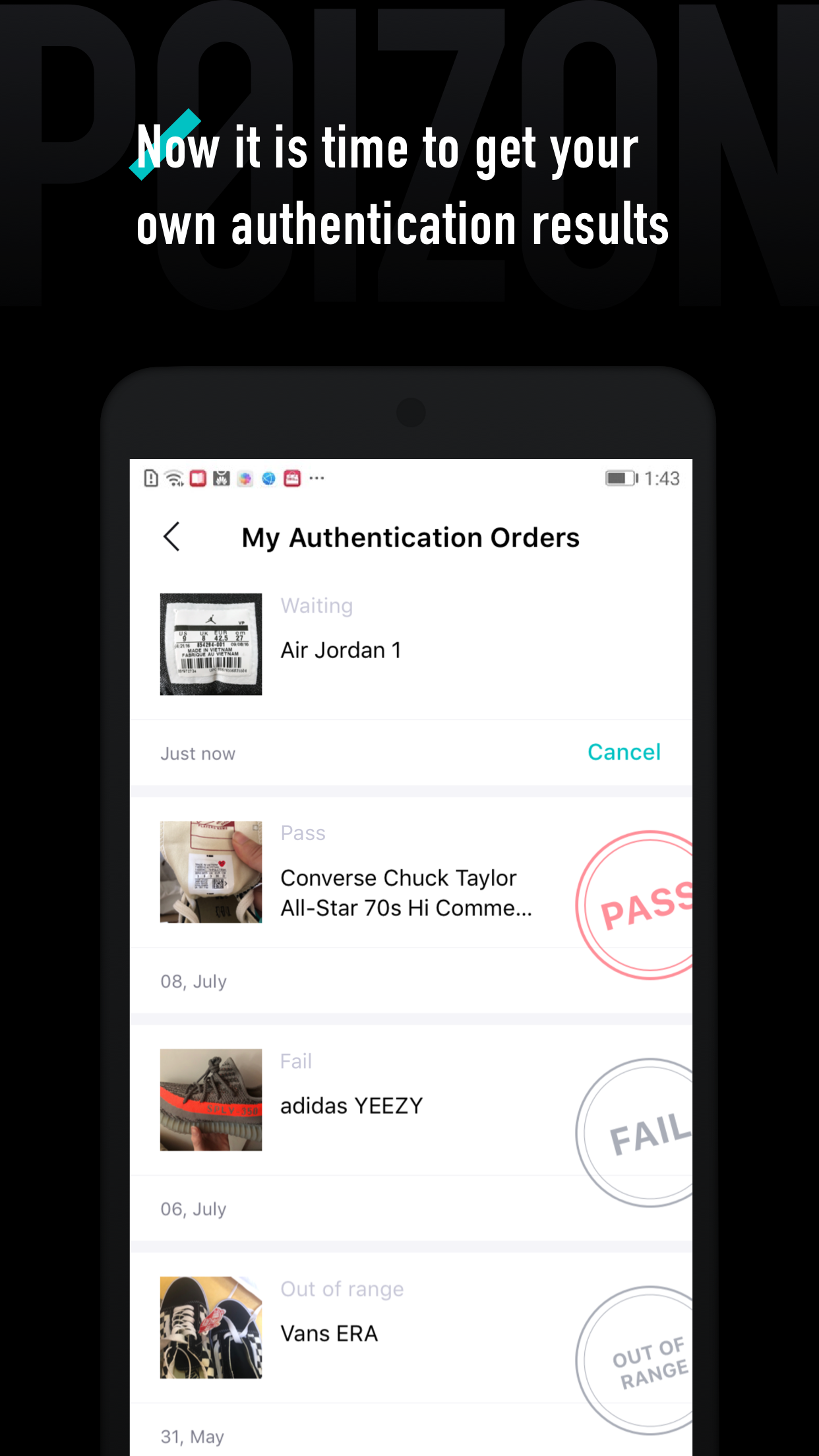 The app of POIZON is a platform for the new generation of fashionable lifestyle. It is committed to building a genuine guarantee of the trend of single product trading service platform. Every trendy item traded on the platform must go through a number of strict authentication and inspection procedures. Online authentication: global online authentication service innovators, the most popular online authentication service providing platform, cumulative authentication of more than 20 million items, which covers sneakers, trendy clothing, watches, bags and other categories of products. Professional team: rich industry experience and efficient authentication process provide more professional authentication services. Welfare information: register as a new user immediately, get free authentication immediately and receive free authentication quota on a daily basis. Download the app of POIZON, look forward to more ways to play!