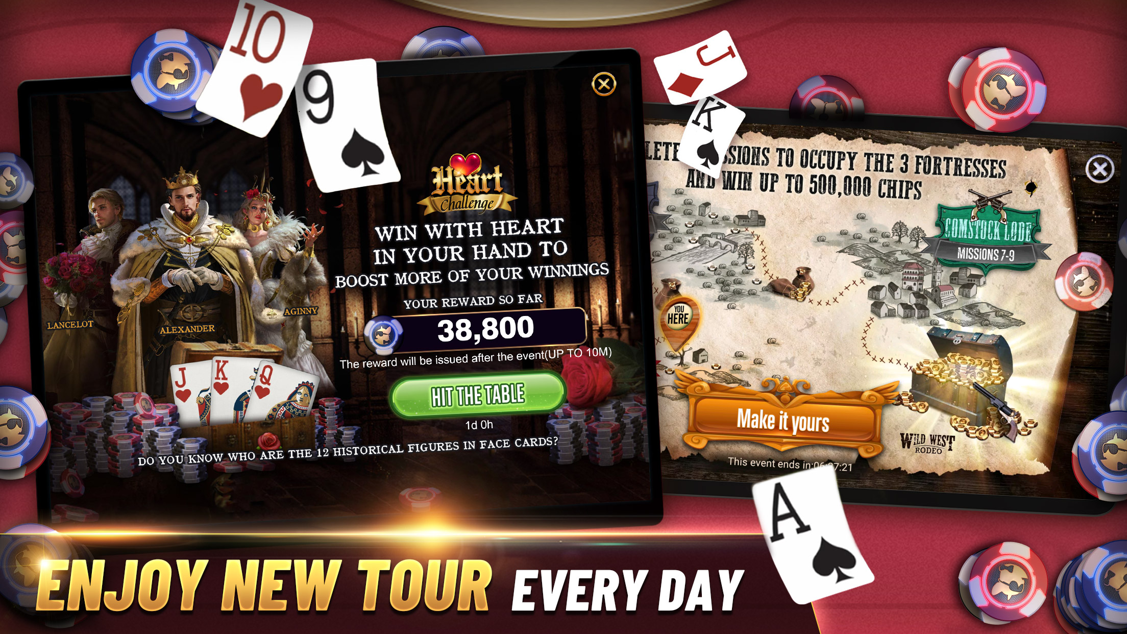 Log in daily to receive free chips, and add a unique twist to your game with unique game modes, exciting bounty missions and great rewards!