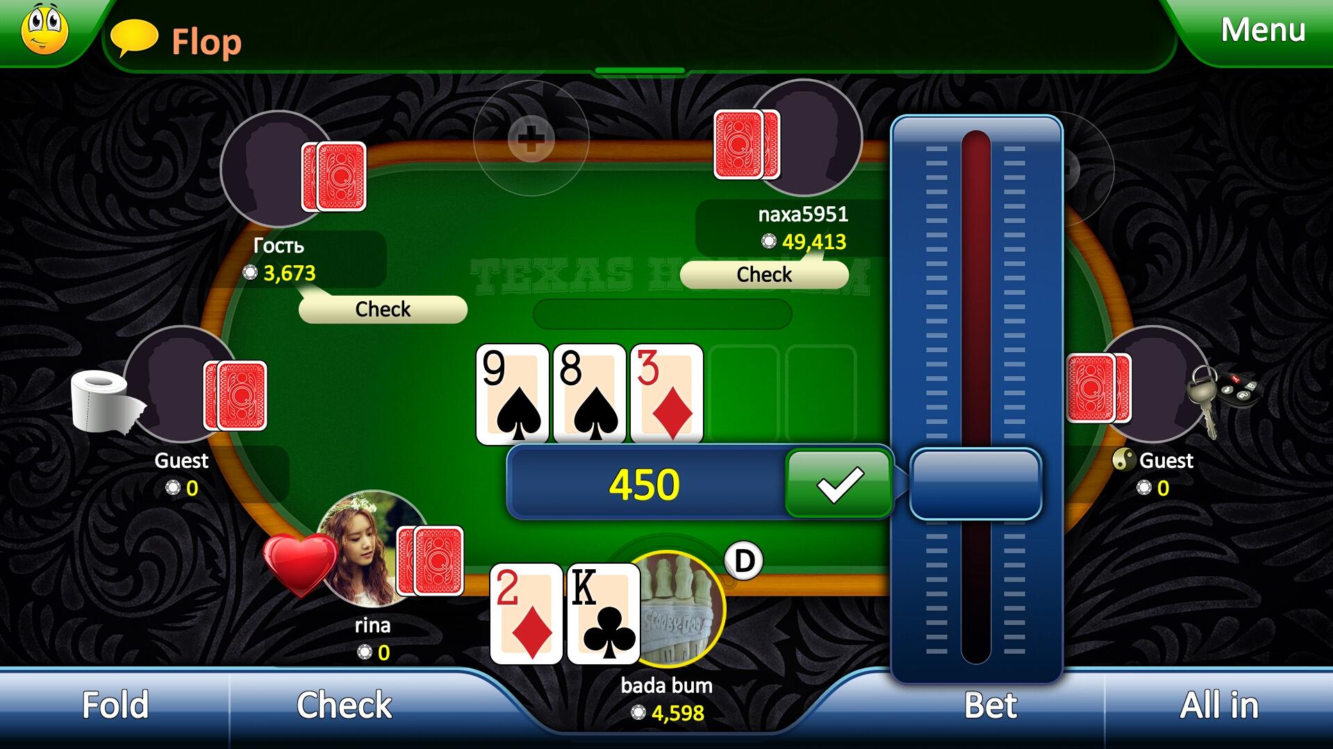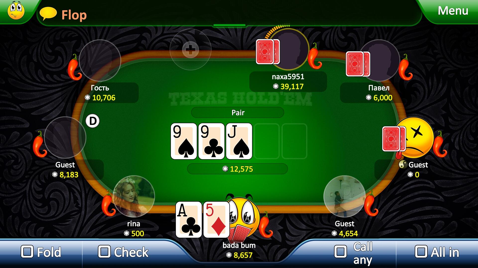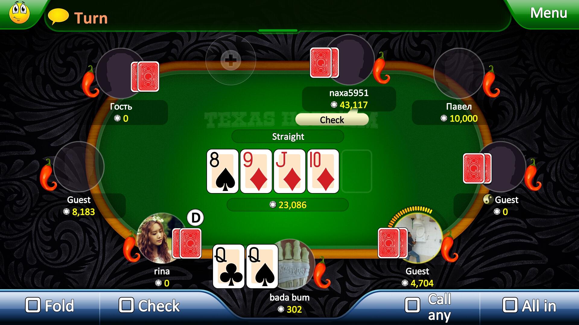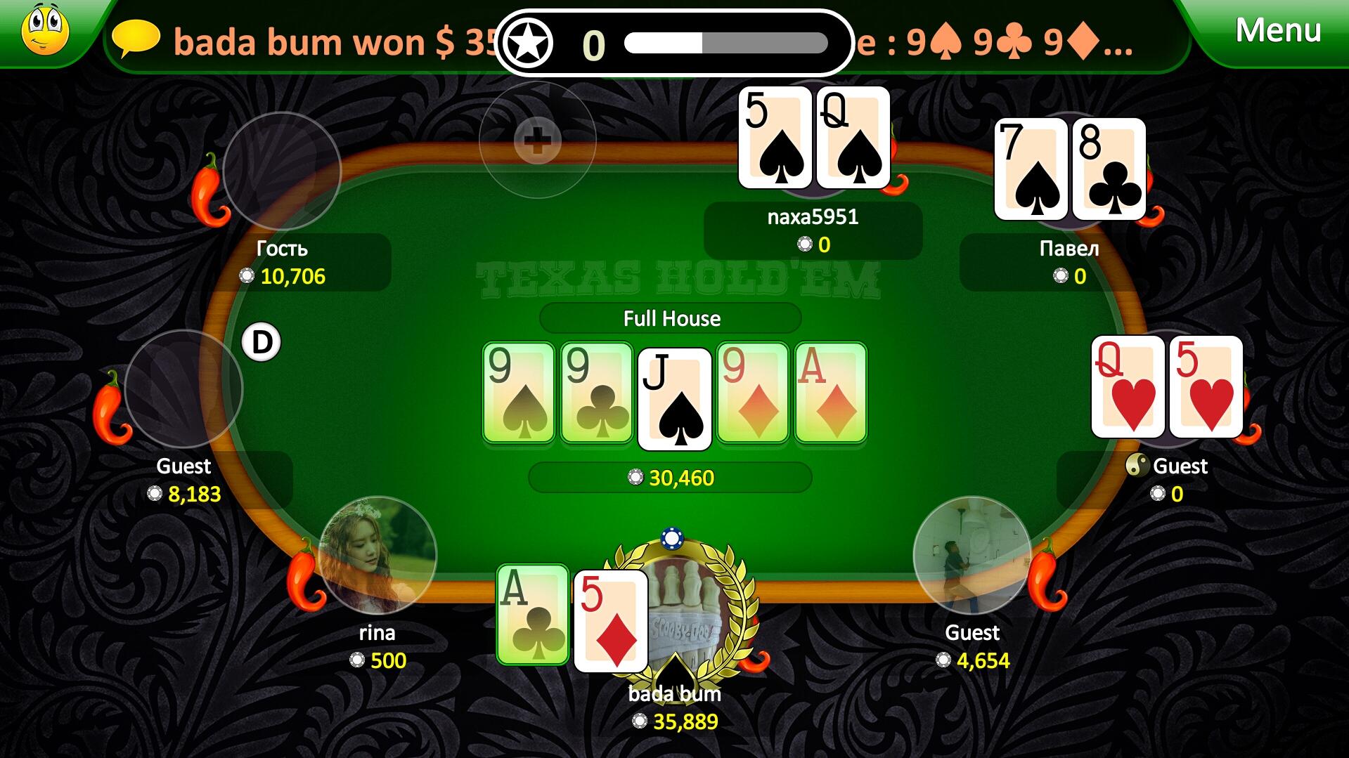 Have you been to learn how to learn to play Texas Hold 'em or just want to find interesting partners for an exciting game? Then you are at the right place. "Poker League" opens the door for everyone, whether you are an experienced player or just yesterday read the poker rules, here everyone will get a decent company and a wide selection of gaming tables. Start playing immediately after launching the game, we do not require registration, but you can always create a personal account, or simply enter via Facebook, in any case, all the achievements and chips obtained in guest mode will be saved. The game offers standard gaming tables for 5 or 9 players as well as “Shoot Out” and “Sit’n’Go” tournaments. In the “Poker League” tables with various rates are available, from a few chips to millions. The higher the stakes, the more exciting and absorbing the game becomes.“Poker League” is more than just a game of poker, we love and care about our players. Playing “Poker League” you will never be short of chips, as we give the chips as a gift every day, hand them for achievements, and replenish them if they suddenly run out completely. The most loyal players playing the game on a daily basis can get up to 99,999 chips per day as a bonus when they visit the game daily, increasing by 1000 chips every day, and so on for 100 days in a row!!! And if this still seems not enough for you, you can always buy the necessary amount of chips in our store. For beginners, the game has a detailed documentation of all the rules of “Texas Hold'em” game. And in case any complex or controversial situation arises, our technical support team will help you solve it, you can contact them directly from the game messenger. Create your own social circle, you can add players to the friends list directly at the tables or in general chat on the main screen, and then quickly find them at different tables or invite to the game at your table. You can chat with your friends via private messages, global and game chat, and even using the “Quick emotions” - a set of emoticons that when selected are immediately displayed on top of your userpic. GAME FEATURES: - Stylish and vivid Full HD graphics - Tables for 5 and 9 players - “Shoot Out’ and “Sit’n’Go” tournaments - Ratings of the best and richest players - Guest game with saving of all achievements - Login via Facebook, VK - No hidden payments or advertising - Easy-to-use and detailed game help - Built-in messenger - Chats in the lobby and at the table - Lively communication using the “Quick emotions” feature - Live Tech Support for each player - Chips for loyalty - up to 99,999 chips a day! - Unique decks and lucky charms
