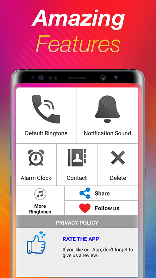 Popular ringtones 2018 is an easy to use ringtone tool just select the right sound clip after listening to it, just tap the name of the ringtone then a screen will appear and from there you can set the tone as a notification sound or whatsapp messages sound, the most amazing option is to set for every contact of yours a unique beautiful ringtone, love ringtones for your lovers and a funny for your friends.