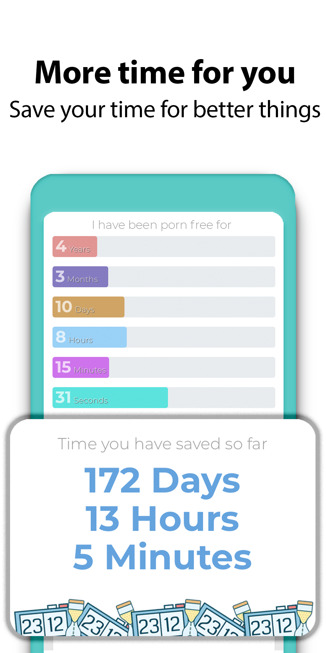 Having trouble with a porn addiction is a real thing, and not many people are willing to admit that. It is a way of life for many people, but some do not understand how much of an impact being a porn addict has on your life. Watching porn changes the way that you view the world and changes the way that you view women for the worse! Porn Addiction Calendar addresses the need to stop watching porn, and helps you become accountable for making the changes happen! Features: 1. Use our counter to track your progress down to the second. 2. Track how much money and time you have saved since you quit watching porn. 3. Create your own reasons to quit watching porn, or use one of our scientifically based facts about quitting. 4. Change the look and feel of the app with our skins section to personalize the app to what you want. 5. Add reasons why you would like to see yourself succeed and stop the porn abuse. 6. Our special panic button will help you send a text to a friend that may be able to help you and be an accountability partner. 7. Our badge system allows you to be rewarded for your success. 8. Our distractions section will help you take your mind off of the porn abuse and introduce you to something more positive and soothing. 9. Porn Addiction Calendar automatically calculates how much money you have saved since you quit watching porn. 10. Our motivational quotes and testimonials will ensure that you are not alone on this process to shake dependence on porn. Here are our top 7 reasons to stop watching porn now: 1. Porn addiction destroys your sex life You may have heard that watching porn with a partner can ignite a more satisfying sex life, but countless hours of scientific research would suggest otherwise. Even light exposure to pornography can cause both men and women to become less interested in their partners looks and sexual performance. 2. Being addicted to porn may cause erectile dysfunction Erectile dysfunction was nearly unheard of in men under 35 before the days of internet porn. Now, with the easy accessibility of internet porn, men may experience erectile dysfunction in their teens, twenties, and beyond. Studies have shown that this is caused by a combination of lowered pleasure chemicals in the brain as well as the users propensity to consume porn alone, in front of a screen, which makes it difficult to be aroused by a real life partner. 3. Porn is highly addictive Just like with drugs, alcohol, or cigarettes, when someone consumes porn, their brain is flooded with a feel good chemical known as dopamine. After viewing porn consistently, a person's brain is inundated with dopamine, and the brain responds by shutting down dopamine receptors. With fewer receptors, the brain cannot respond to dopamine in the same way. 4. Porn fuels sex trafficking There are plenty of young women who enter the porn industry by their own free will, but many of the performers in porn are victims of human trafficking, ofter recruited by the use of violence or threats 5. Porn addiction negatively affects your relationships The more porn a person consumes, the more likely they are to associate pleasure with a fake fantasy. This makes it harder to become aroused by a real person, or be interested in a relationship. This causes porn users to become alienated from their partners, and puts people at risk for psychological problems. 6. Porn addiction destroys your body image Because of the fact that most performers in porn are touched up with makeup, cosmetic surgery, or photoshop, porn users are regularly exposed to unrealistic expectations of the human body. This causes porn users to become more likely to feel badly about the way that they look. 7. Porn addiction can cause psychological problems Porn is often watched by a user in secret, which can leave users feeling shameful, insecure, and lonely. Download Porn Addiction Calendar for FREE to quit being addicted to porn!