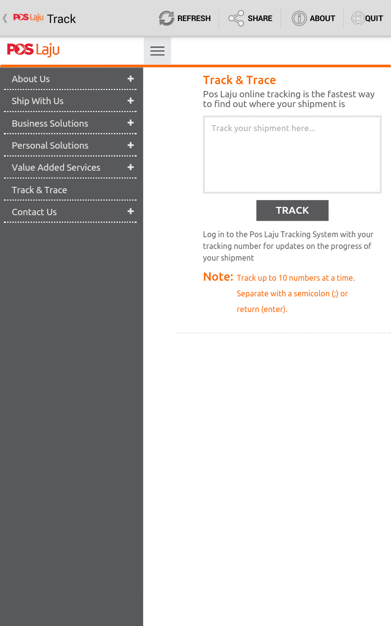 Pos Laju is the leading courier company in Malaysia, connecting over 80% of populated areas across the country with its Next Day Delivery and other services. Pos Laju has the widest network coverage and the largest courier fleet in Malaysia. This is NOT an Official Track & Trace Apps by Pos Laju Malaysia. But we develop it as a community project for Malaysian. Please visit http://www.poslaju.com.my for more information.