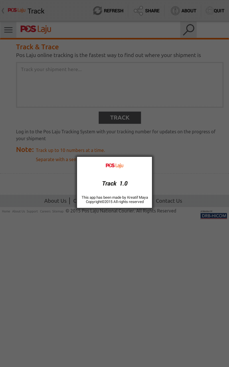 Pos Laju Track & Trace (Package Name: my.com.poslaju) is developed by Kreatif Maya Inc. and the latest version of Pos Laju Track & Trace 1.12 was updated on December 21, 2016. Pos Laju Track & Trace is in the category of Tools. You can check all apps from the developer of Pos Laju Track & Trace. Currently this app is for free. This app can be downloaded on Android 2.3.2+ on APKFab or Google Play. All APK/XAPK files on APKFab.com are original and 100% safe with fast download.