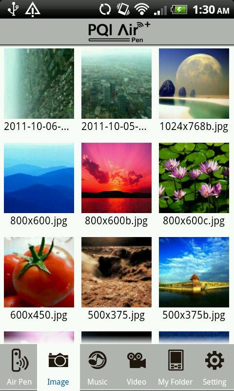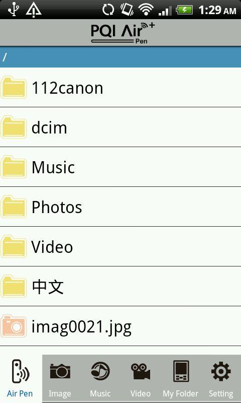 This is the app designed for PQI Air Pen (a WiFi Flash Drive). Users can browse the files from PQI Air Pen wirelessly through WiFi connection. Features: 1. Browse remote PQI Air Pen contents. 2. Browse local contents in the App. 3. Download files from PQI Air Pen to local directory. 4. Browse all image files from PQI Air Pen. 5. Browse all audio files from PQI Air Pen, and select a single file to playback the audio content. 6. Browse all video files from PQI Air Pen, and select a single file to playback the video content. 7. Supported file formats: Document: .pdf, .txt, .doc, .docx, .xls, .xlsx, .ppt, pptx Image: .jpg, .png, bmp, .gif Audio: .mp3, .mp4, .3gp, .wav, .ogg, .imy, .aif Video: .mp4, .3gp 8. Setting WiFi password, channel, and SSID, and perform reboot and factory reset.