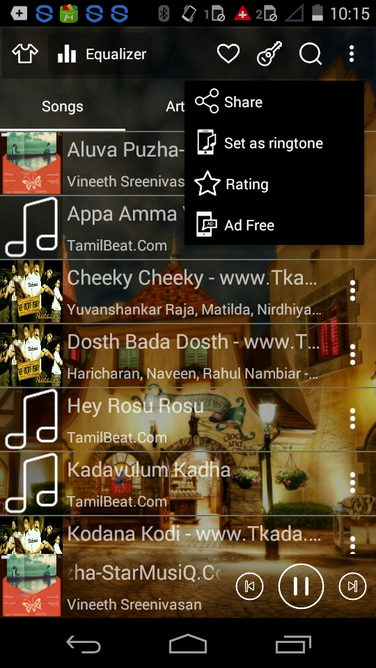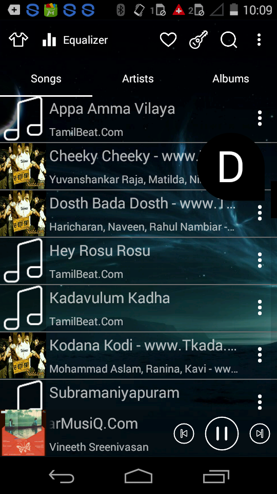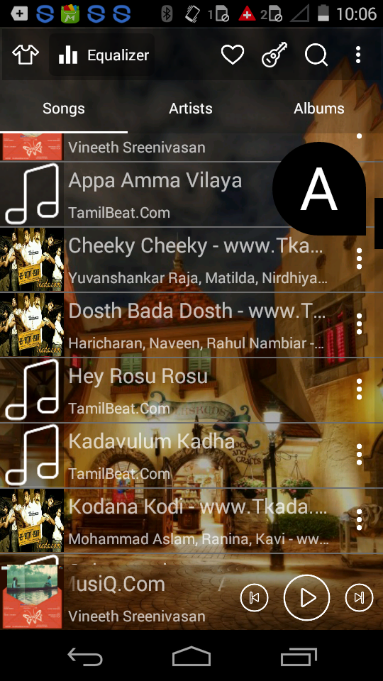 Music player is not only based on artists or albums but also songs