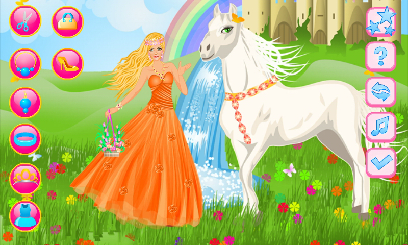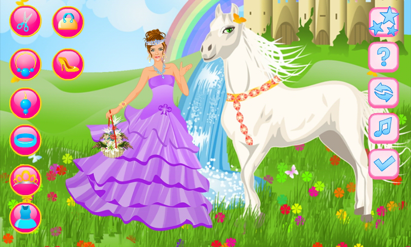 Do you like magic and just adore princesses? What about rainbows, castles and magic creatures such as unicorns, horses and other talking animals? Well discover this dream land and the life of princess Sofia! Dress her up to make her look great today choosing the perfect royal dress and accessories. Now she and her magic horse look great together and there's a perfect magic day waiting for them to enjoy. If you love princess games and animal games you'll love this fun app! You'll find here in this princess game many dress up items to choose from and bright colors that every girl or child will adore.