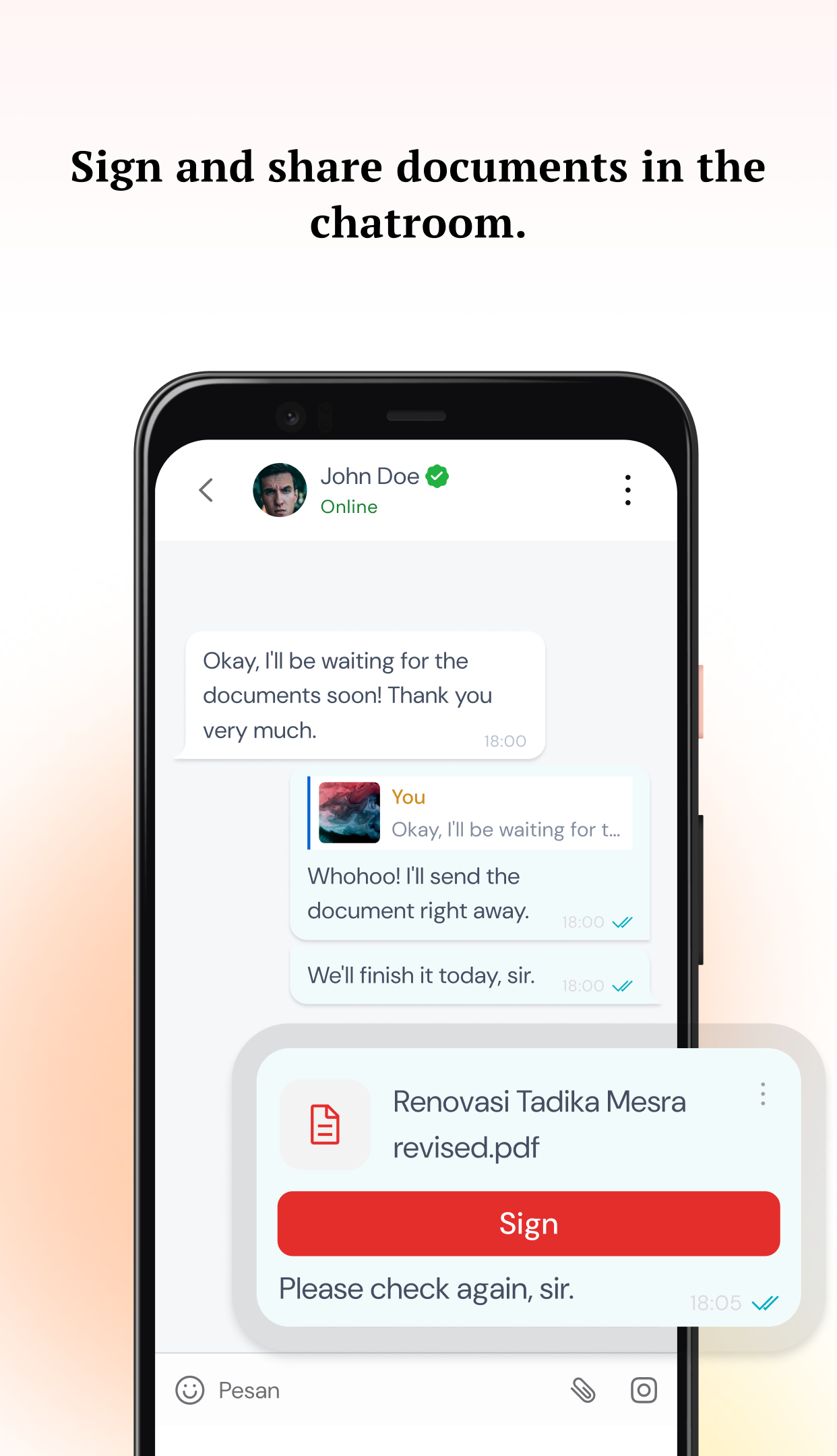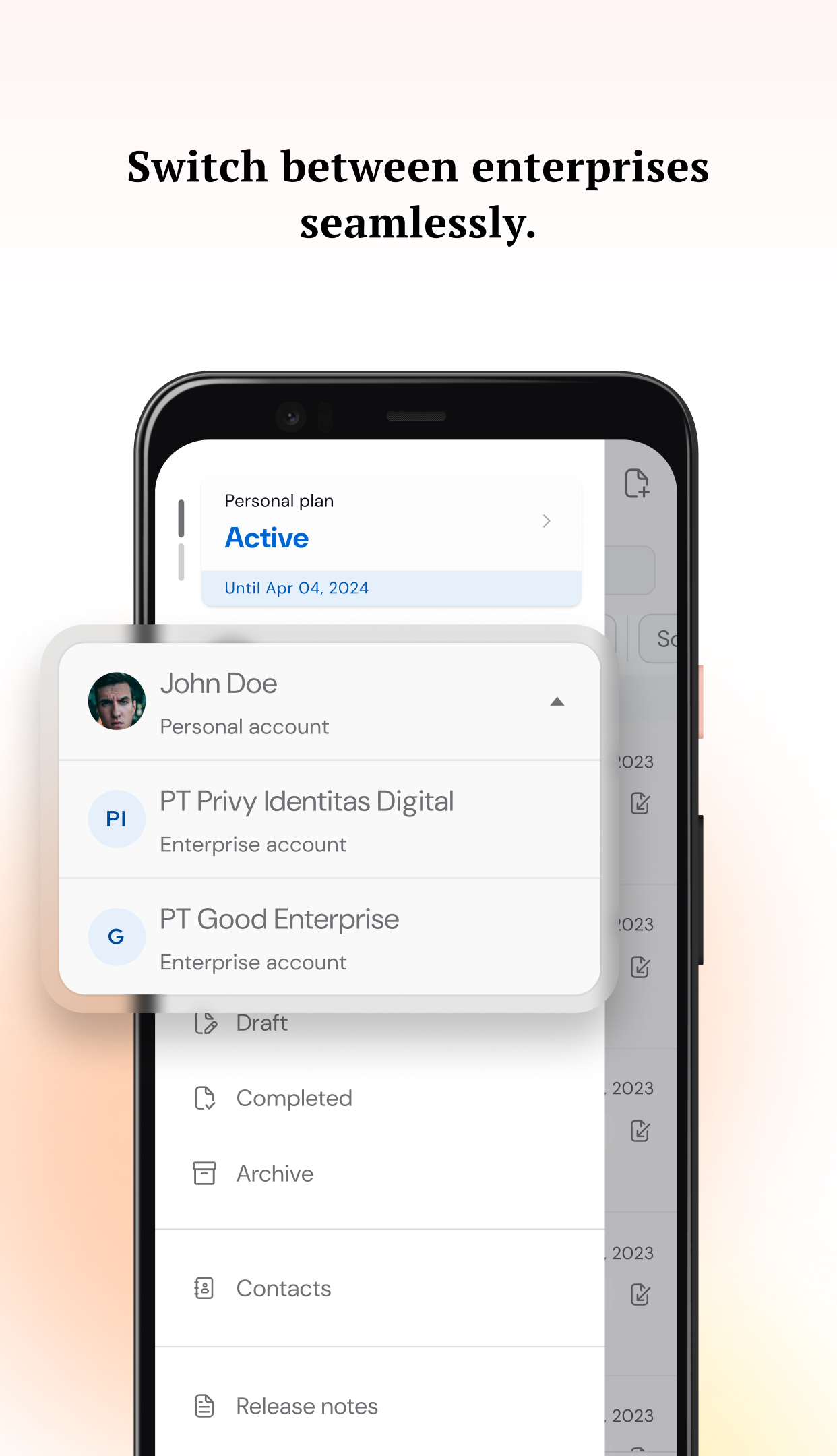 - Use official Peruri e-Stamps (e-Meterai) directly in the app.