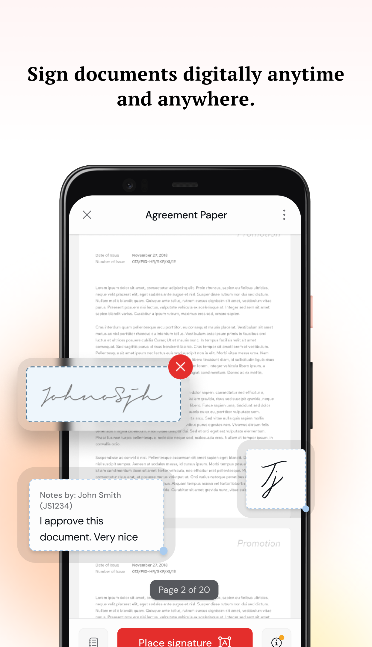 - Sign electronic documents with full legal force.