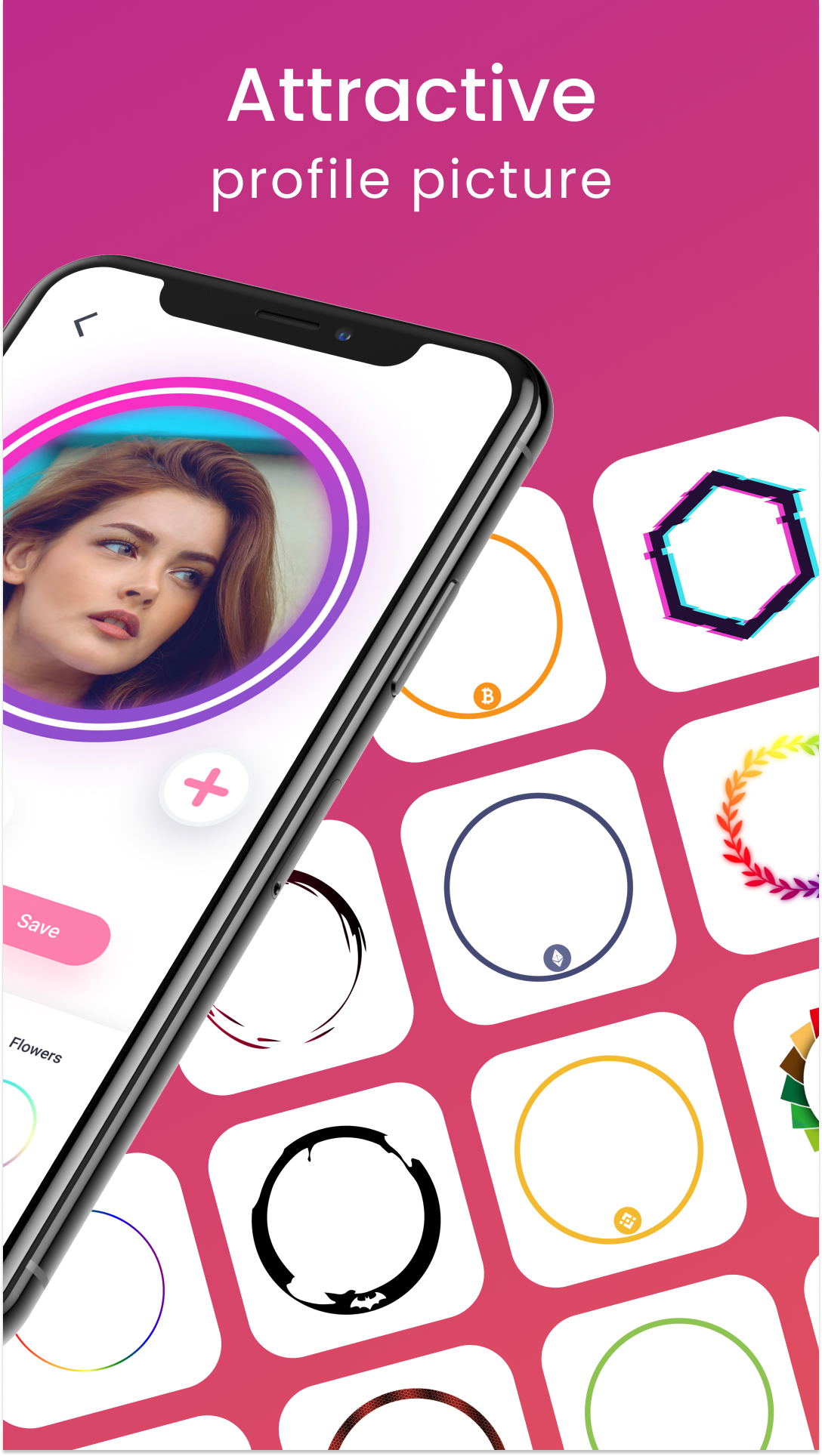 Hundreds of Options: You can use your favorite frames from hundreds of options under popular, basic, neon, NFT, coin, nature, texture, text and cinema categories.