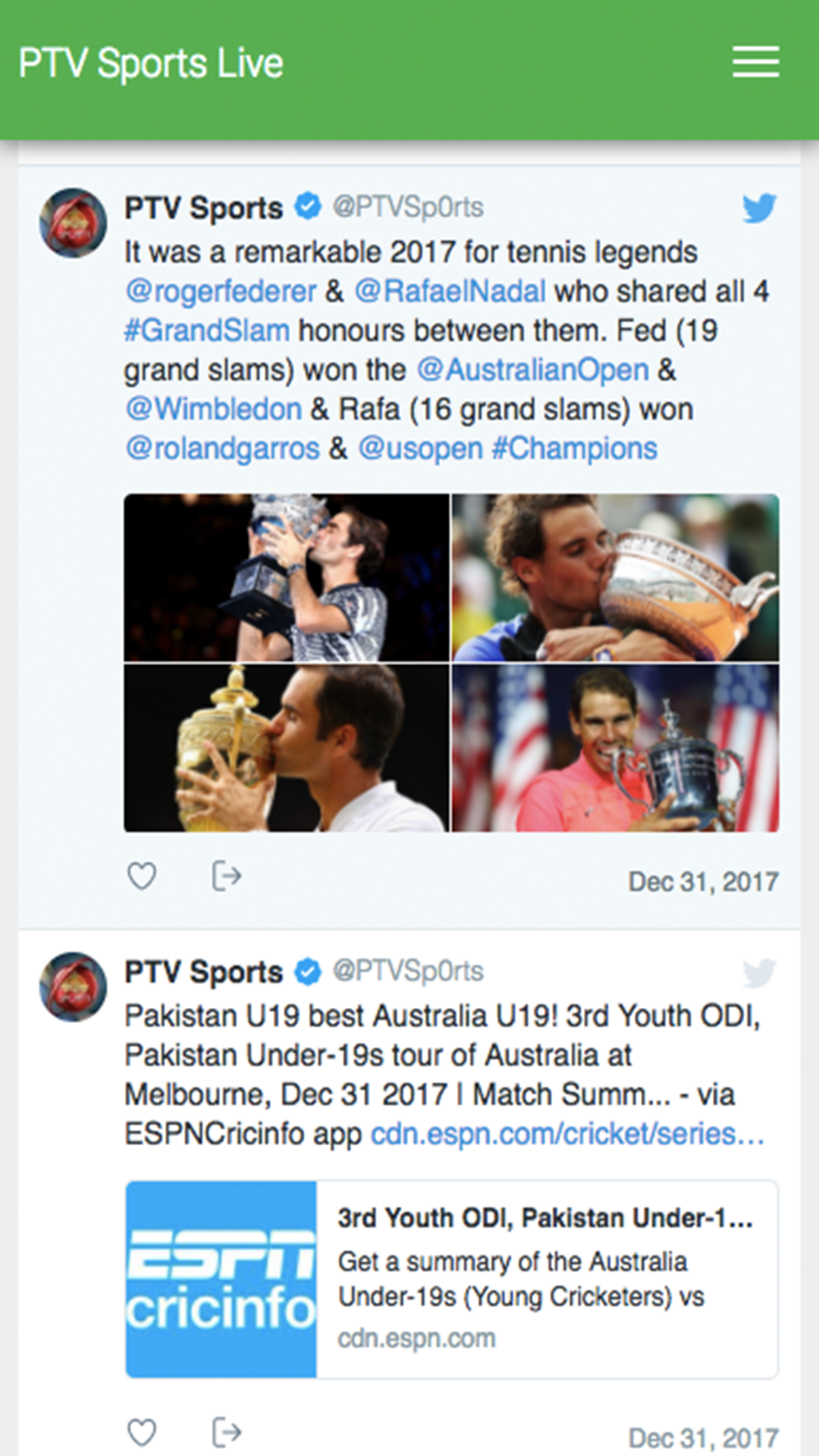 PTV Sports Live is Live streaming of Official PTV Sports Channel. This app is purely about sports and PTV Sports cover all major sports leagues and Sports Events Like (Cricket , Football , Hockey , Kabaddi , badminton , baseball , basketball , boxing , squash , golf , polo , shooting , swimming , table tennis , volleyball etc etc ). PTV Sports stream highlights of all sports . You can watch Football Leagues and tournaments live on PTV Sports and you can watch reviews of professional players and analysts . Cricket is another craze in Pakistan and all over the world so PTV sports streaming provide cricket streaming of all majors leagues and tournaments and PSL (Pakistan Super League) is a top league in cricket . So you can watch all matches of PSL on PTV sports and all Pakistan cricket team matches on PTV sports . In this app you can also get news about all sports from PTV Sports . This app is about Cricket , Football , Hockey , Kabaddi , badminton , baseball , basketball , boxing , squash , golf , polo , shooting , swimming , table tennis , volleyball etc Lovers. PSL 2018 All matches live on PTV sports. You can watch of all matches. Pakistan vs New Zealand cricket series 2018 highlights on PTV Sports. Premier League Live coverage ( English Premier League Live )