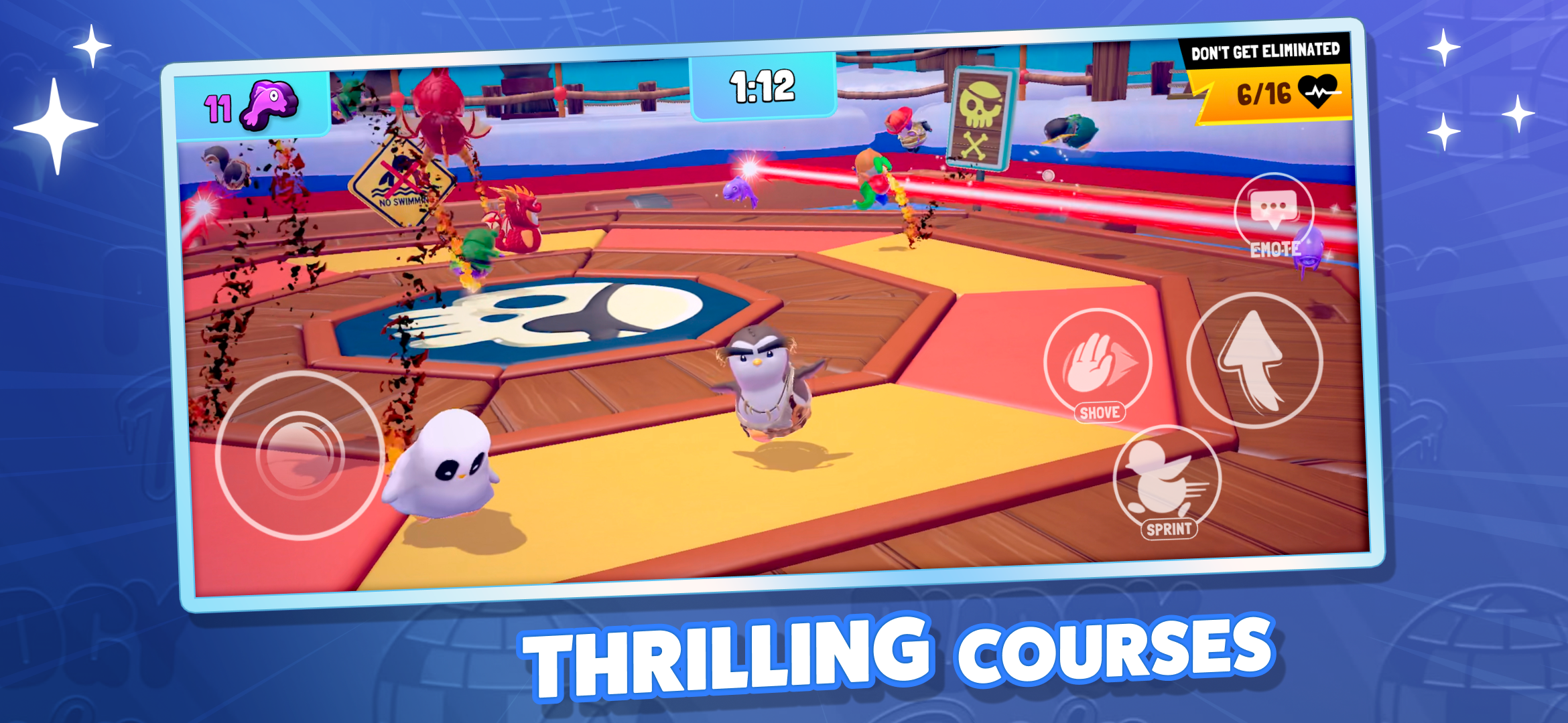 Run, stumble, and fall through frozen battlegrounds packed with chaotic obstacles, survival knockout rounds, and high-stakes races. Play as your favorite Penguin and brainrot characters, team up with friends, and dash past rivals in outrageous costumes to claim victory. With up to 20 players per match, it’s the ultimate penguin party royale from start to finish. STUMBLE TO VICTORY Fly solo or huddle up for multiplayer mayhem across endless maps, modes, and challenges. Dive into knockout races, survive elimination rounds, and outlast everyone in this fast-paced social battle royale. No breaks, no chill - just pure chaos in every match. COLLECT PARTY ATTIRE Unlock over-the-top penguin costumes, from banana fits and Glizzy gear to infamous brainrot meme characters like Tung Tung Sahur, John Pork, and Ballerina Cappuccina. Collect costumes and customize your penguin to look absolutely unhinged. MEME MAYHEM WITH PUDGY PENGUINS Pudgy Penguins brings the party (and the memes) straight to your phone. Create your own viral moments from fresh in-game chaos and unforgettable fun. Dive into hilarious knock out rounds packed with wacky obstacles, unpredictable opponents, and endless laughs with friends in the memest penguin party royale this side of the equator. ENDLESS FALLS, ENDLESS FUN Enjoy epic stumbles in battle royales, relive untimely falls in nail-biting races, and celebrate limited-time multiplayer events packed with exclusive costume drops and exciting new gameplay updates. The party never stops – and who knows, maybe this time you’ll make it to the finish line.