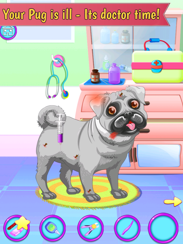 Hi everyone, welcome to SKigames pug pet doctor kids and girls game. This time you will become the pet doctor, and cure some unusual patients( pug breed of Dog), they are our 4 cute pet babies of Pug Dog ----- These lovely pet babies encountered something terrible got hurt while playing are very dirty, and need the pet doctor’s help quickly, and you are just the one we need!!! In this app ---- you become Pet Doctor, you can use many different kinds of medical instruments to treat the pet babies’ illness. Here you can do all the following things to them,First clean theme give them a shower find the ticks on their body and then clean their teeth also you can do things such as taking body temperature, infusing, measuring blood pressure, taking X-ray picture, putting ice packs and so on but also can take advantage of many toys to make them happy. No matter in the treatment process or finish treating, please don’t forget to take a snapshot for the cute pet baby! Therefore, if you really feel interested and excited about such a hospital game related to pet babies, please do not hesitate any more, join our amazing pug pet doctor, and enjoy the experience of being a professional pet doctor (pet Vet)!!! How To Play: Open Pet Doctor, choose a little pet baby you like to start the game. At the bottom of the screen, you can choose different medical instruments to treat the pet baby, such as dragging the cotton swab to clean the wounds, dragging the tweezers to remove the wood splinters, dragging the X-ray machine onto the patient to find out the fracture parts, dragging the band-aid to cover the patient’s scatches, and dragging the ice packs to the patient’s forehead to lower the temperature, etc. Meanwhile, the band-aid, ice packs, infusion bottle have many different styles to choose. After all these treating process, you can take a snapshot for your healthy pet baby! Features: • 4 cute pet babies to choose from • A huge variety of decoration items to choose, including funny band-aid, colorful ice packs, attractive infusion bottles and so on • Pet babies will have various expressions and sounds when you are treating them • Continued improvements of this game, please feel free to send us your feedbacks and suggestions Need You Know: This app is totally free to download and play. Enjoy the game and make your pet smell good and look awesome. 667f8ef0d2