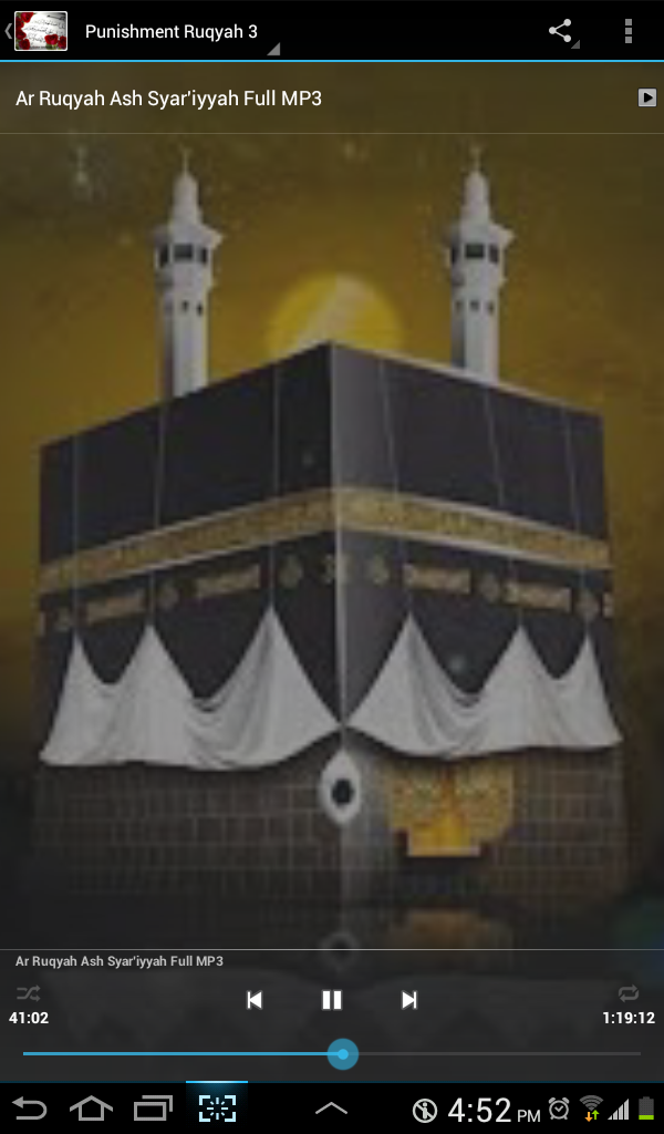 This is a punishment Ruqyah (الرقيه الشرعيه) App to Combat the effects of Jinn, sihr, black magic, sorcery, witchcraft and other harmful things. This is a sunnah of the prophet Muhammad (s.a.w). The Roqya char3iya itself contains verses and short surahs from the Holy Quran that are recited to seek Allah's shield and protection against Sihr, evil eye, jinn, black magic or sorcery. Surah Al Fatihah by itself is called Arruqyah. Adhan (Prayer call), Al Fatihah, Quran verses and Short Surahs were collected together to makeup this Punishment Ruqyah Al Shariah mp3 App. Download and listen to the available Manzil one through three for your protection. If you're affected by the evil eye, sihr, sorcery, black magic or the like of them, in shaa Allah, Allah will remove that effect(s) from you. Please consider the following conditions before playing any of the track in this App: 1. Be in the state of Purity i.e cleanliness from dirts. Preferably perform Al-wudu (ablution) 2. Then Play and listen to any of the available ruqyah. 3. Listen attentively to the selected الرقيه track and follow the meaning of the recitation in your mind. If you don't know the meaning of all or some of the recited verses, then just sit back and relax and just imagine that a raqi (a person doing roqya to another person) is doing it to you. 4. Remember that the manzil has no benefit by itself except that it is Allah who will heal and protect you. For your references here are the roqyah char3iya verses and short surahs: Adhan Surah Al-Fatihah (chapter 1): verses 1 to 7 Surah Al-Bakarah (chapter 2): verses 1 to 5, 163, 255 to 257, and 284 to 286 Surah Al-Imran (chapter 3): verses 18, 26 and 27 Surah Al-A'araf (chapter 7): verses 54 to 56 Surah Al-Israa (chapter 17): verses 110 and 111 Surah Al-Muminoon (chapter 23): verses 115 to 118 Surah Al-Saaffaat (chapter 37): verses 1 to 11 Surah Al-Rehman (chapter 55): verses 33 to 40 Surah Al-Hashr (chapter 59): verses 21 to 24 Surah Al-Jinn (chapter 72): verses 1 to 4 Surah Al-Kaafiroon (chapter 109): verses 1 to 6 Surah Al-Ikhlas (chapter 112): verses 1 to 4 Surah Al-Falaq (chapter 113): verses 1 to 5 Surah Al-Naas (chapter 114): verses 1 to 6 More manzil Apps are available in my catalog. many reciters like the following are available: Sheikh Abdul Rahman Al Sudais Ruqyah Shariah Full MP3 Sheikh Saud Shuraim Ruqyah mp3 Sheikh Saad Al Ghamidi Manzil App Sheikh Ahmed Bin Ali Al Ajmi Roqyah against The Evil Eye. This App is completely FREE so download and listen offline anytime at your convenience. You can also HELP by sharing this Ruqya App with anyone who is affected by black magic, sihr, sorcery, evil eye effect or the like. In shaa Allah, Allah will remove that from him/her. May Allah continue to protect and shield us with His Ultimate protection from ANY unwanted thing living or dead Amen. Please don't forget to leave a good review and/or rating for this App in the store. If you have any suggestion(s) or want to send a feedback about this Punishment Ruqyah Full MP3 App please use the developer email provided to do so. I will be glad to hear from you! Thank you very much for checking out this App!