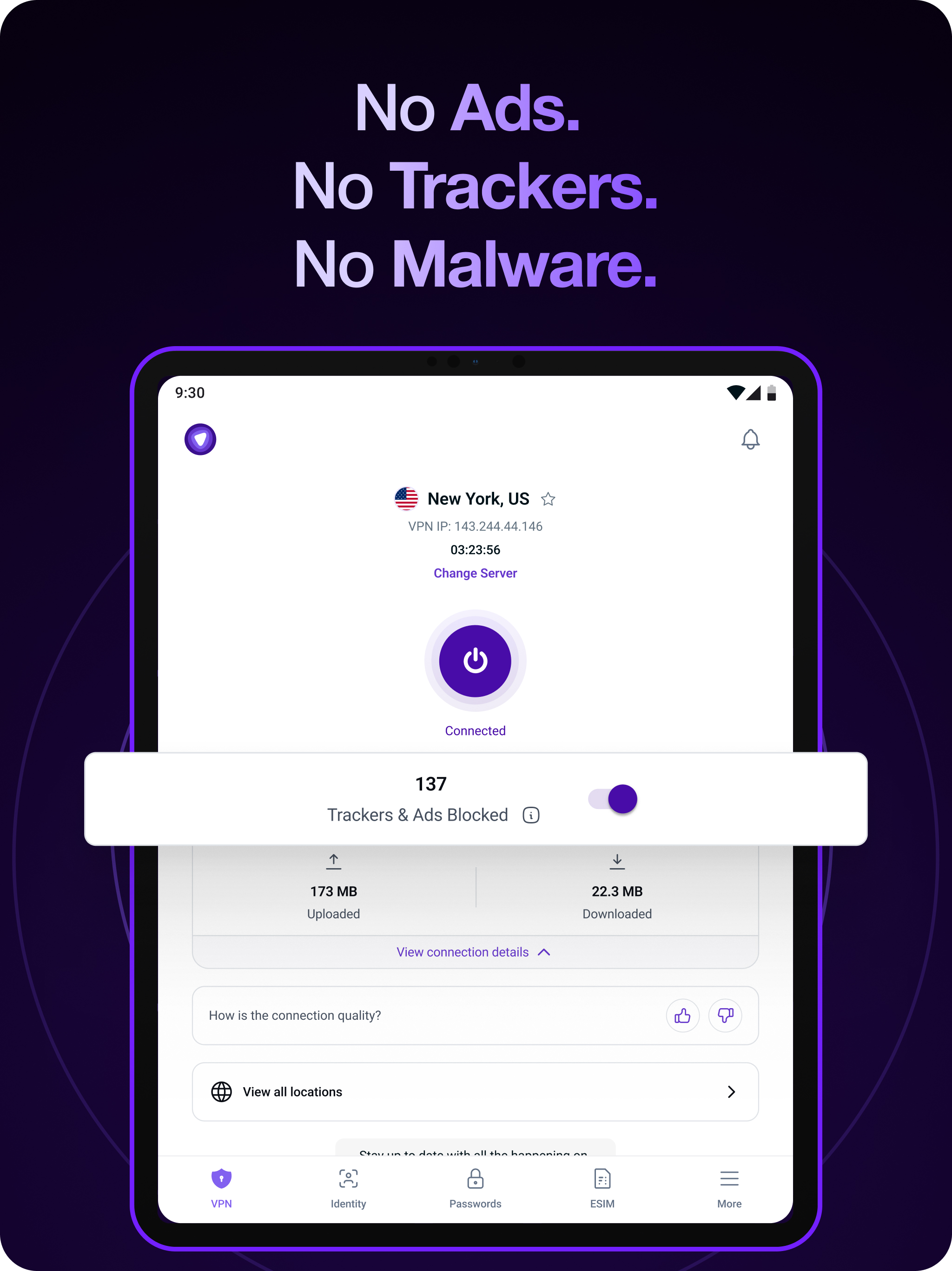 Get secure and safe online with the blazing-fast VPN for Android in just a few taps.
