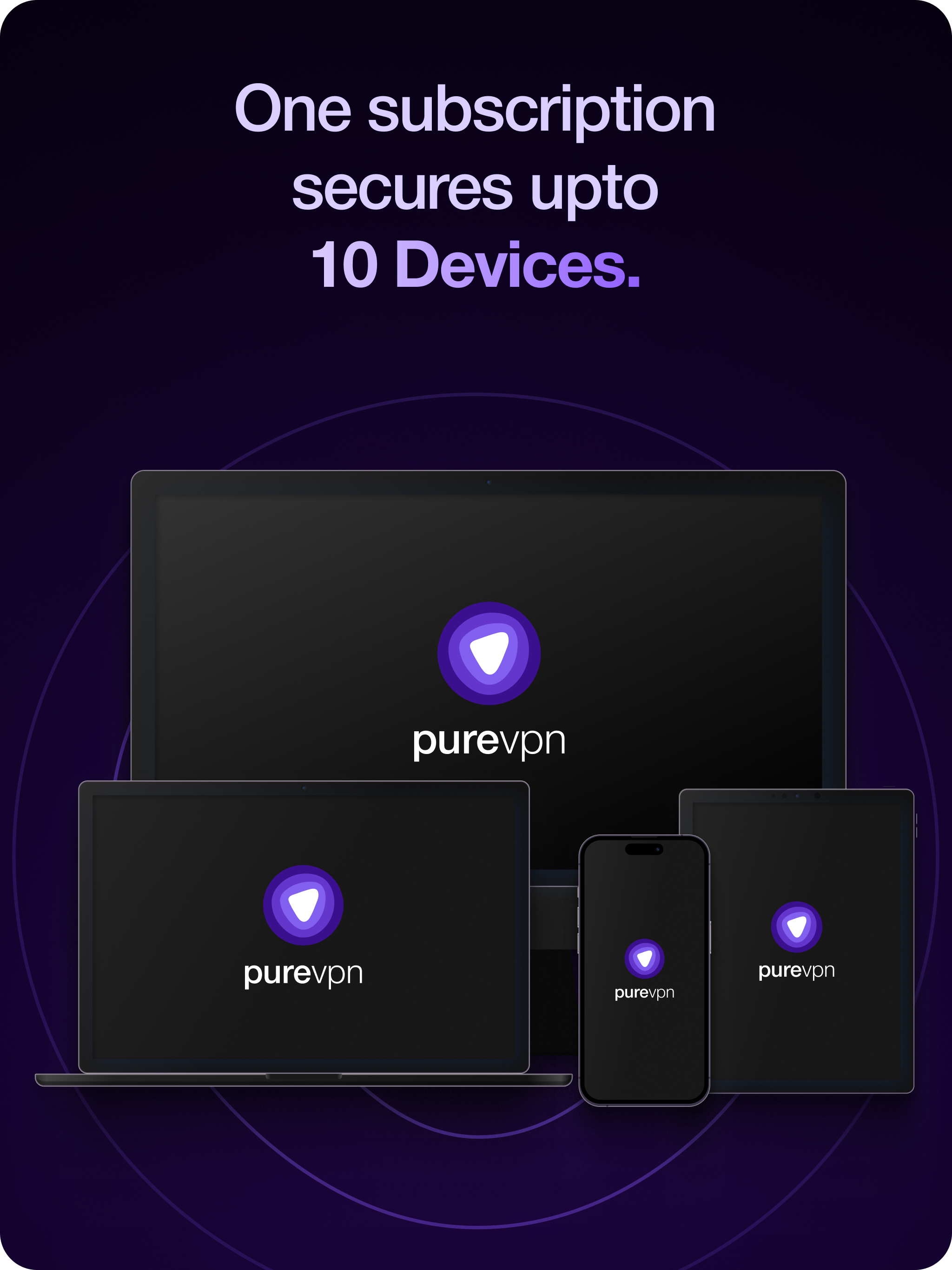 ✓ 1 Account for up to 10 devicesEach PureVPN account allows you to connect up to 10 devices at a time. This means that you can protect all your devices simultaneously!