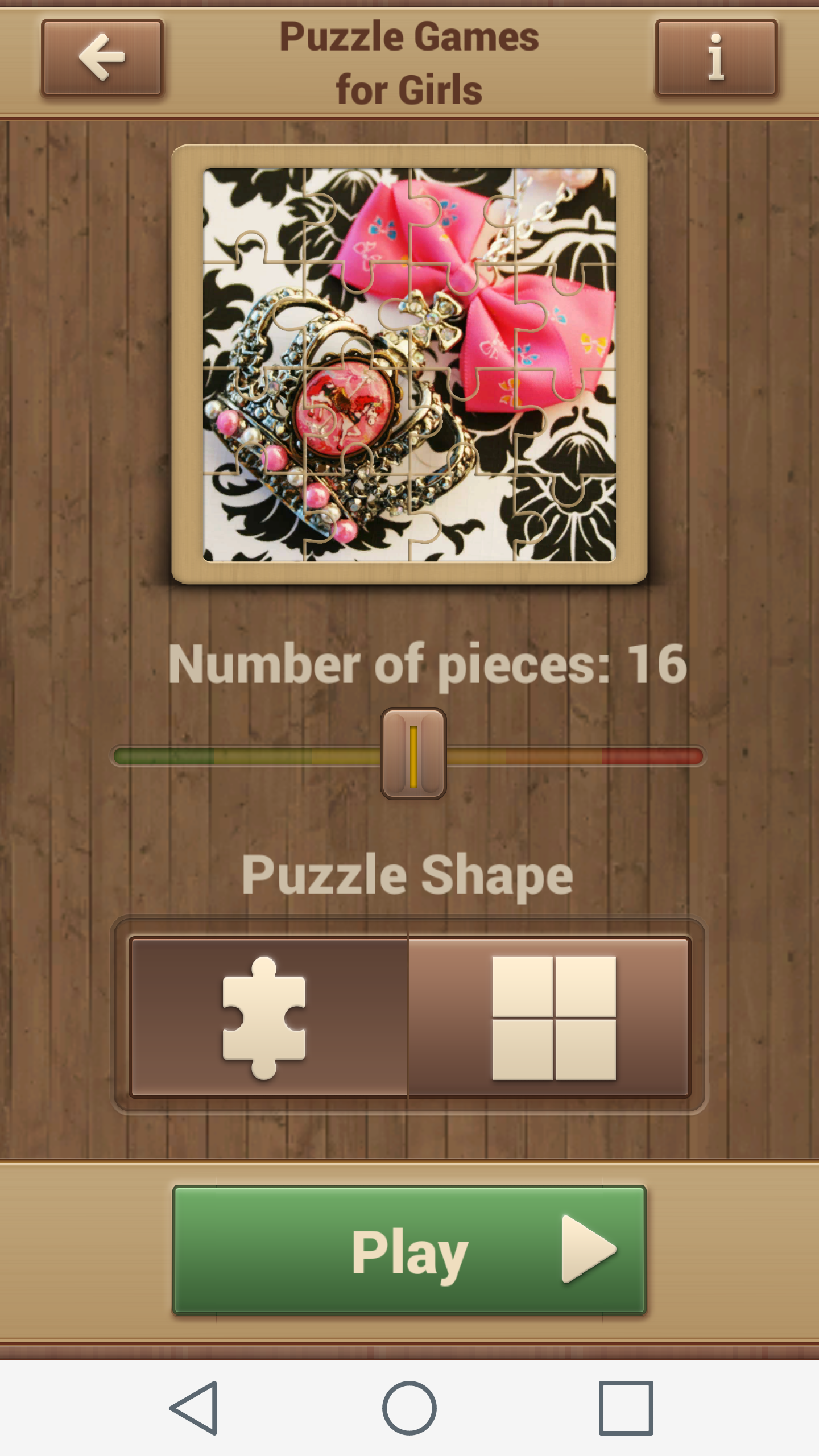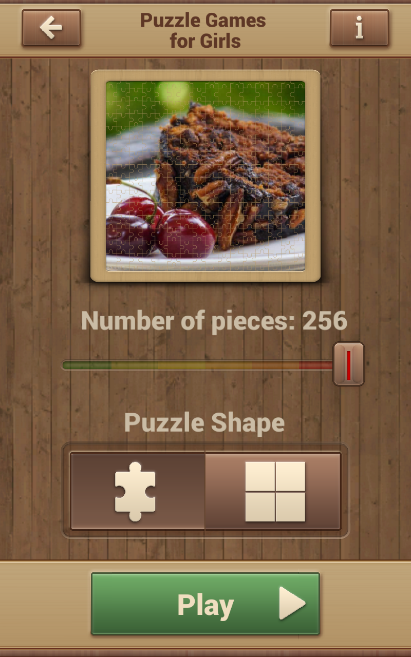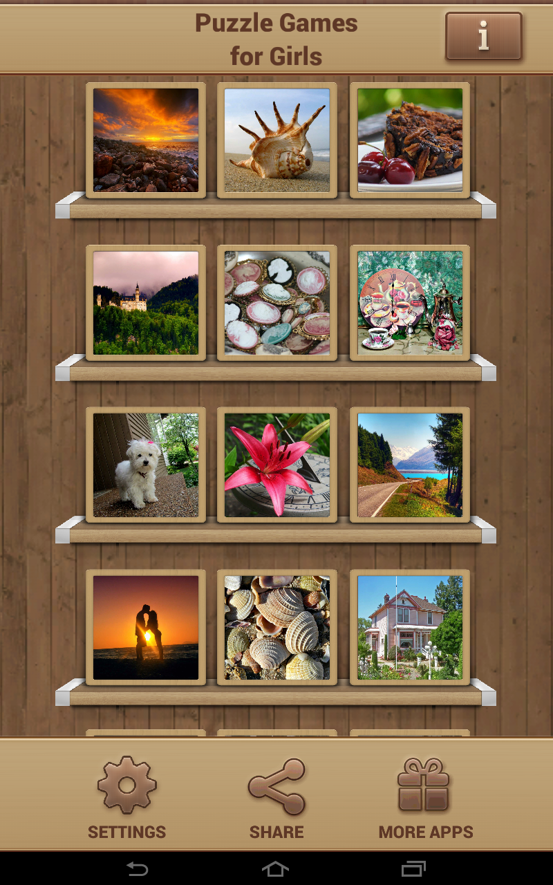 Puzzle Games for Girls offers the following options: