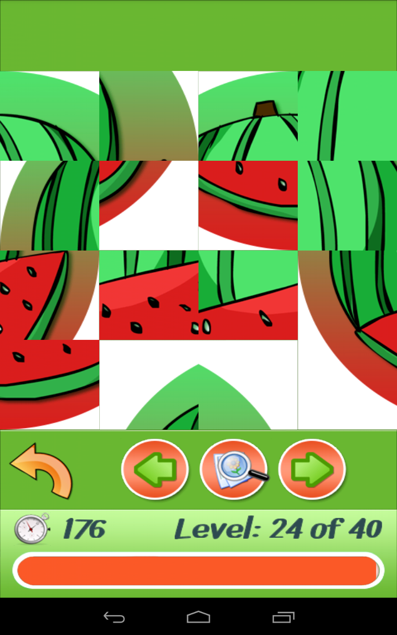 This is a new educational game for kids puzzles, which will not leave your child indifferent. It is completely free, even though it contains many colorful and unique cartoon drawings of fruit and flowers . This educational game is designed for children of all ages, for both boys and girls. Let me try to outline to you the benefits and advantages for your child that you will get by downloading the game. If your answer to all of the points below is “yes”, then this game is for you! * You do not want your child to play meaningless games that will not be of any benefit to him or her, but you want the kids develop and improve their memory while playing; * Your child is 3, 4 , 5, 6 years old and over; * Your child loves colorful pictures; * Your kid likes collecting puzzles both simple and more complex; * You want your child’s concentration and attention levels to become higher; * You want to have your child entertained and involved while you are busy; * You want your kids to learn how to recognize different objects, fruit, flowers, etc. while they are playing; Doubtlessly, you love your baby and your answers will be positive. Let me tell you what else you will find in this game: * 40 levels of different complexity with colorful pictures; * Different type of puzzles ranging from 2x2 to more sophisticated 5x5; * 10 kinds of flowers (roses, cornflowers, chamomiles, dandelions, tulips, lilies, carnations, sunflowers and snowdrops); * 10 kinds of fruit ( bananas, strawberries, oranges, grapes, watermelons, kiwis, pears, apples, lemons and plums); * Quiet background music that will certainly have a positive effect on the kid in the process of the game; * Audio cues when your children pass the level or when they do not manage to assemble the puzzles at a specified time; * A small gift for your child, when he or she passes through all levels; The game Puzzles is something that will definitely appeal to your child, because in addition to the benefits and advantages that I described above, we can assure you that this game is made with love for children.