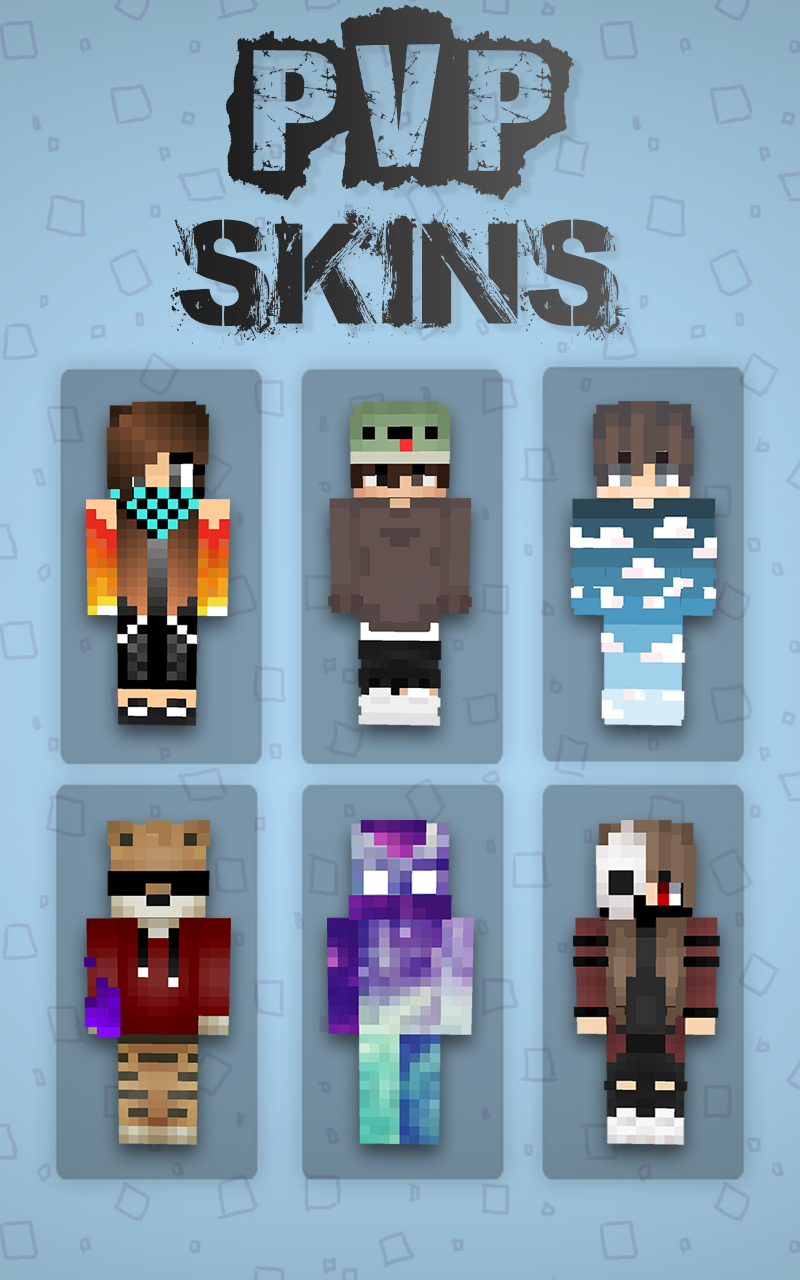 PvP Skins for Minecraft is a great collection of top skins that are available absolutely for free. If you like to play Minecraft and are looking for a suitable pvp skin that will emphasize your individuality – App PvP Skins for Minecraft is the best solution! Our skinpack will add a lot of bright interesting images that you can use every day for free. By installing Our PvP Skins for MCPE (Pocket Edition) gameplay will be much more interesting and you just will not be bored. Herobrine skins, skins with white eyes, letsplayers skins, skins in hoodie, skins in headphones, Skins for Girls, skins, mob skins, noob skins, military skins, camouflage skins and many others you can find in this app. Also, do not forget to use your favorite mods for minecraft. We recommend such as: shaders, ideas for buildings, houses in minecraft, furniture, weapons, mechanisms, varnishes blocks, swords mod, portal mod, baby addon, editor raincoat. FEATURES: + Download in one click + nova skins + All pvp skins for free + ability to add to «Favorites» + support old versions MCPE 0.15.0, 0.16.0,0.18.+ Don't forget to leave suggestions in the comments what PvP Skins by nicknames you'd like to see and we will add them in subsequent versions. Disclaimer: PvP Skins for Minecraft is an unofficial app. This app is not affiliated in any way with Mojang AB. All rights reserved. In accordance with http://account.mojang.com/documents/brand_guidelines