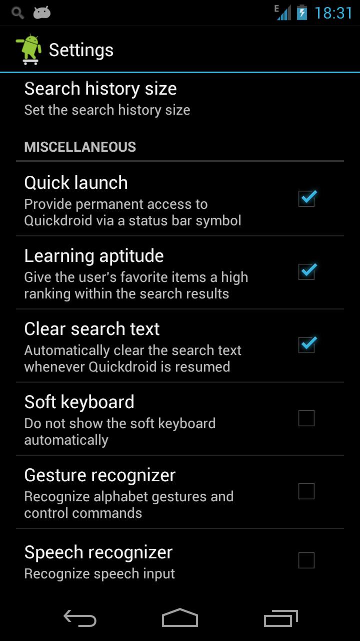 v4.2.1 - Preference option to remove Quickdroid from the back stack - Preference option to exit Quickdroid by pressing the back key once even if the soft keyboard is visible
