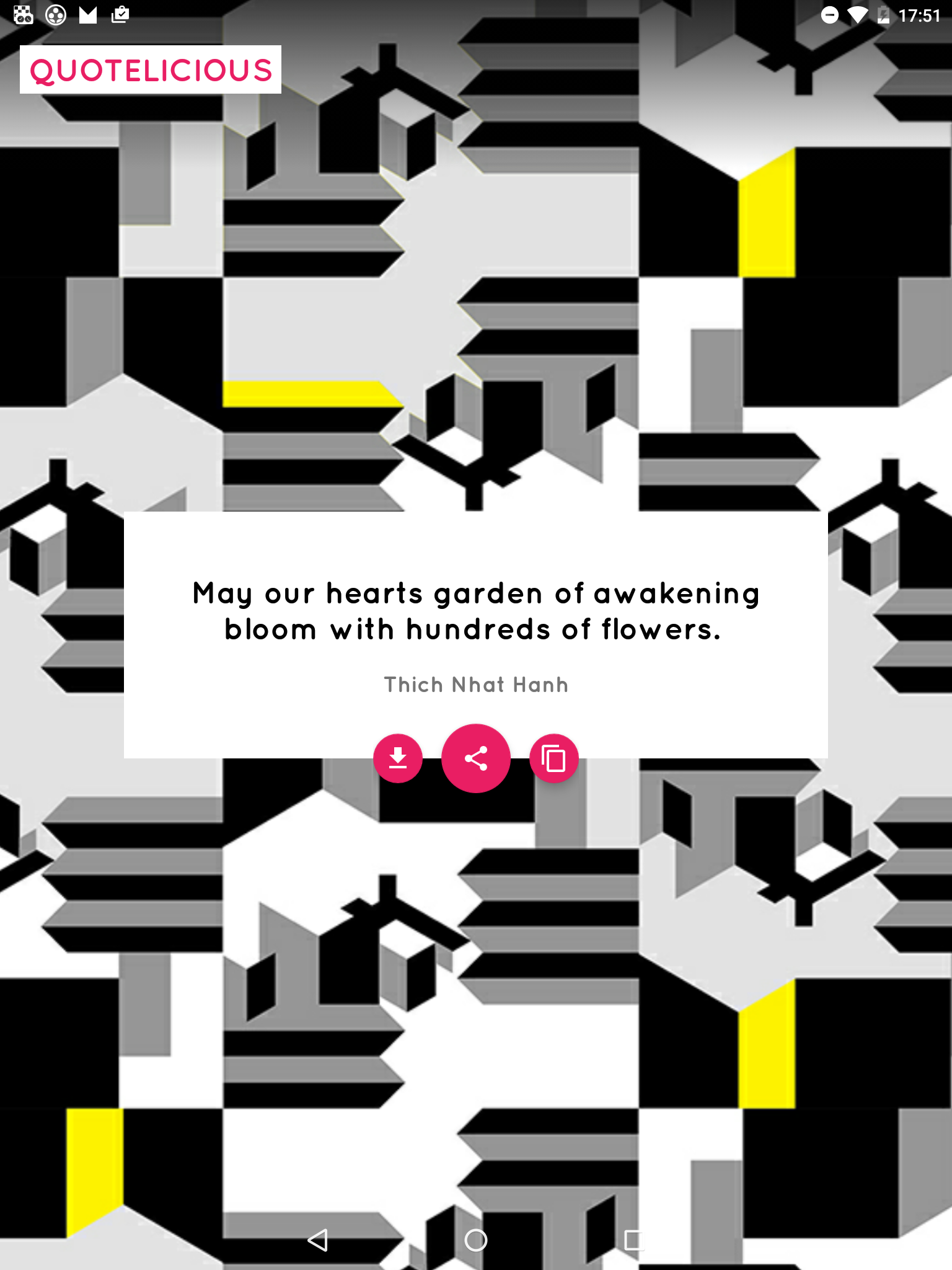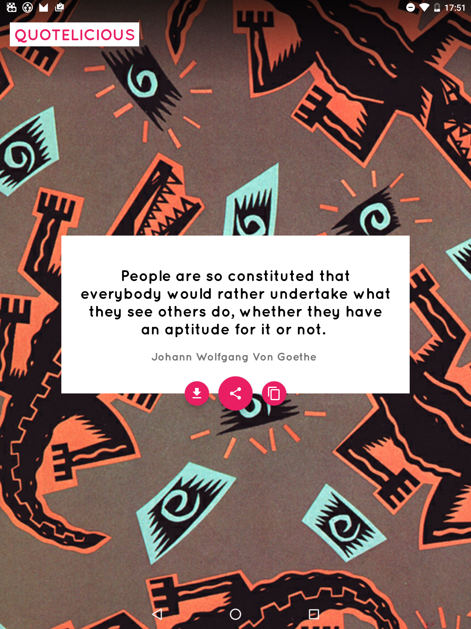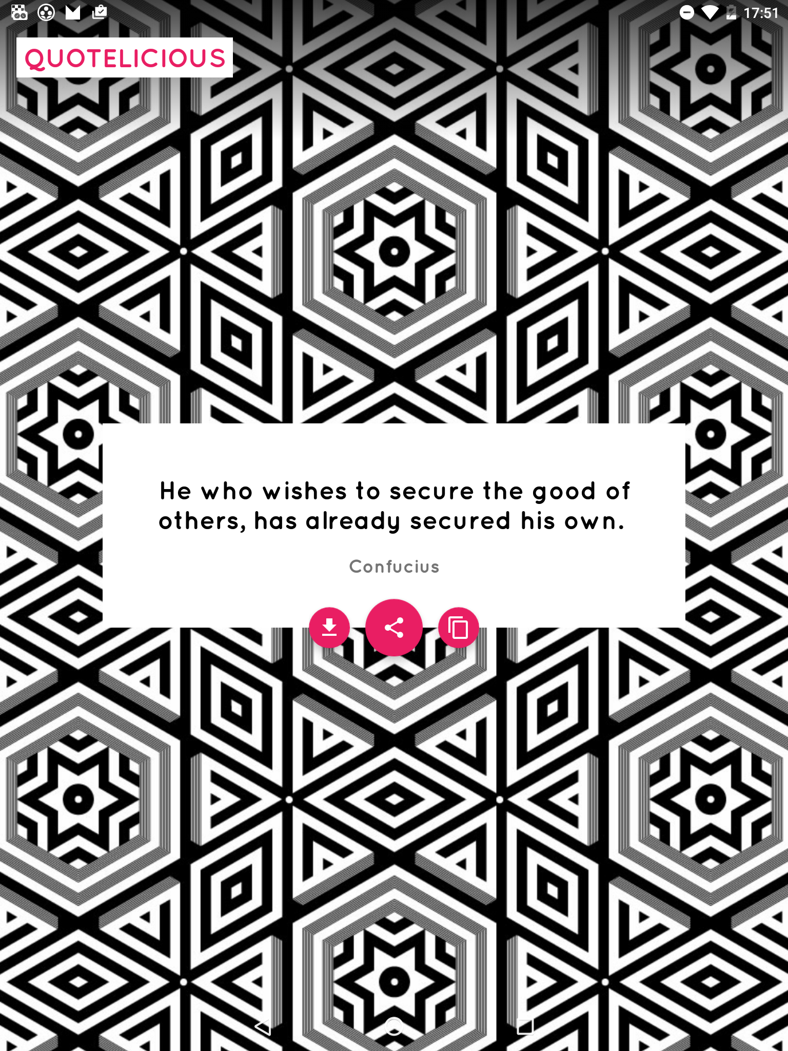 The most beautiful and inspiring quotes from the most influential people from around the world. This app shows you infinite inspirational and motivational quotes in a beautiful package so you can share on Instagram, Facebook, Snapchat, tinder, ello, twitter and many many more social media websites and platforms. Just tap to load a new quote or share to motivate your friends and family. App includes a huge database(2.000.000) of Inspirational, Famous, Love, Friendship, Chocolate, Funny, Patriotic, Success, Leadership, Birthday, Movie, Sports, Music, love and freindship, and Christmas quotes and is constantly updated with new qoutes!! Check out the #quotelicious hashtag on social media to see the quotes shared by other users. would you need this free app and when would you use it? You can use this app just to kill the time or to get inspiration from it. Wise men have said wise words in the past, and this app helps you to gain this knowledge. It is really easy to share with your friends and family, like your mother, father or children, to let them know you care and think about them. They might surprise you back with something you can relate to. ★ This free app might also help you through tough times in your life. A lot of short inspirational things are being said about life and love. Share them with your people. ★ You are able to download the image to your gallery if you want to save the design backgrounds along with the words. ★ Sharing is caring, be creative about what and who you share with, these shared words you select tell a lot about you as a person.