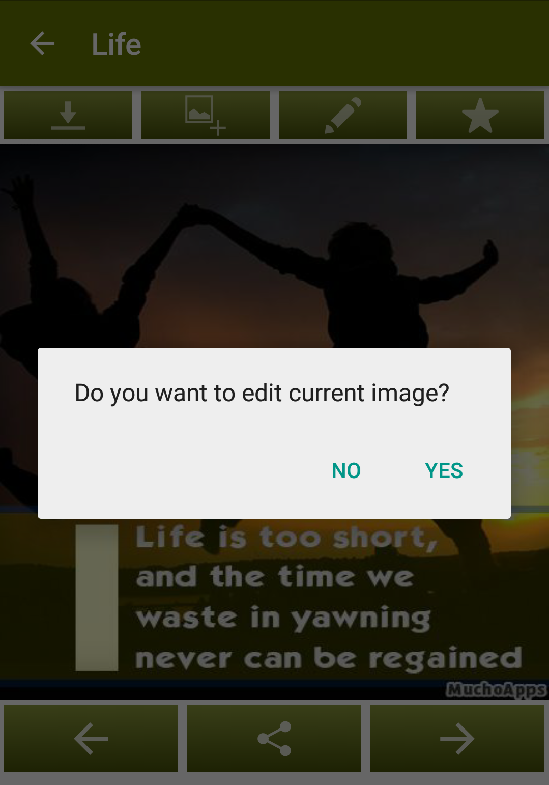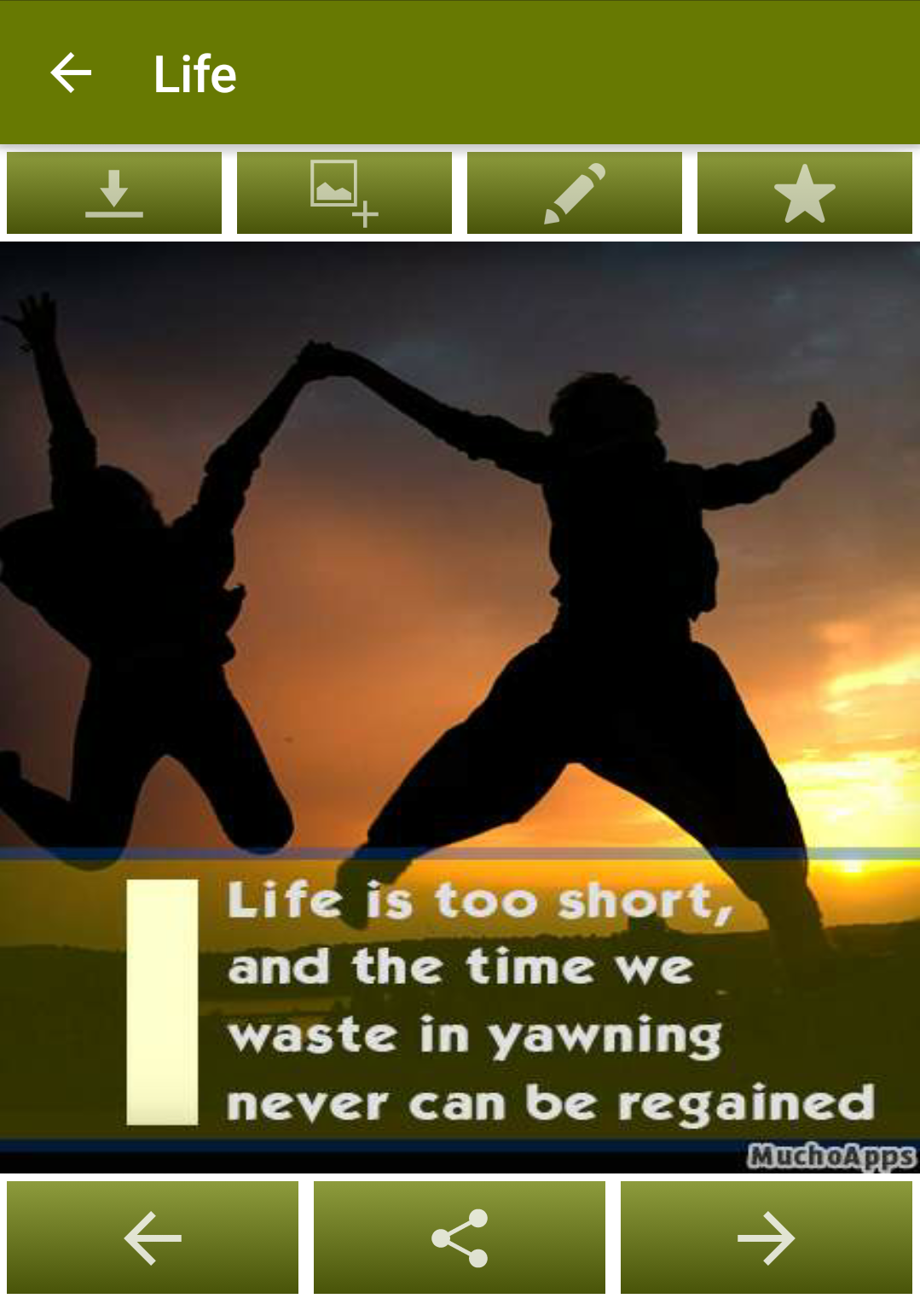 Quotes about life (Package Name: muchoapps.frasesdelavida) is developed by Mucho-Apps and the latest version of Quotes about life 171130 was updated on November 30, 2017. Quotes about life is in the category of Lifestyle. You can check all apps from the developer of Quotes about life and find 35 alternative apps to Quotes about life on Android. Currently this app is for free. This app can be downloaded on Android 4.0.3+ on APKFab or Google Play. All APK/XAPK files on APKFab.com are original and 100% safe with fast download.