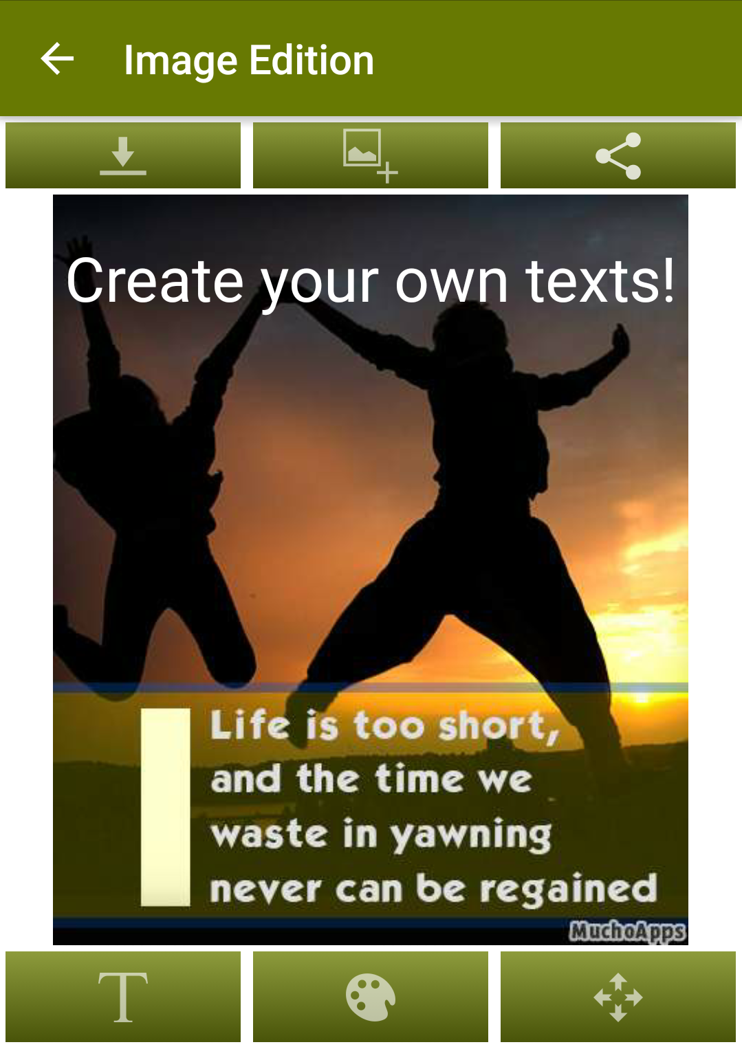 - Share the quotes or images of your choice through your preferred instant messaging apps or by using any app from your device, all you need is have it previously installed so you can use it properly.