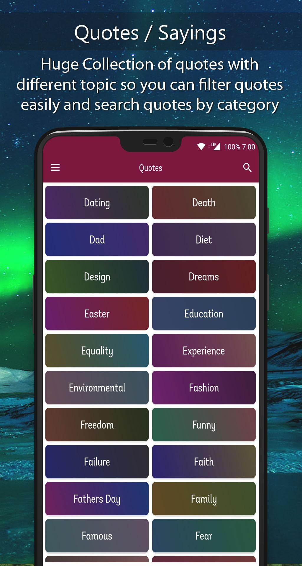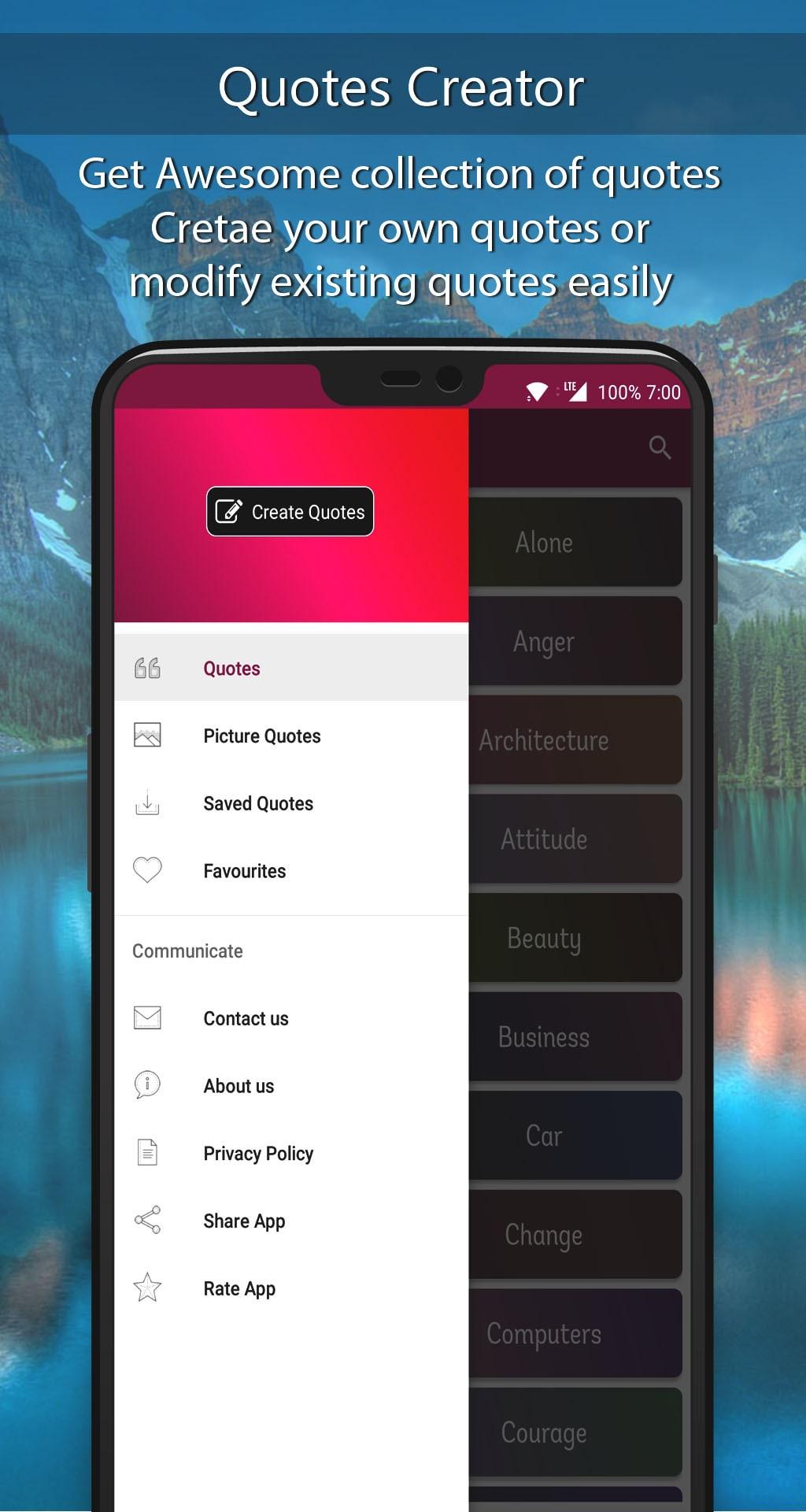 Diverse CategoriesQuotes Creator features quotes across more than 50 categories, including: