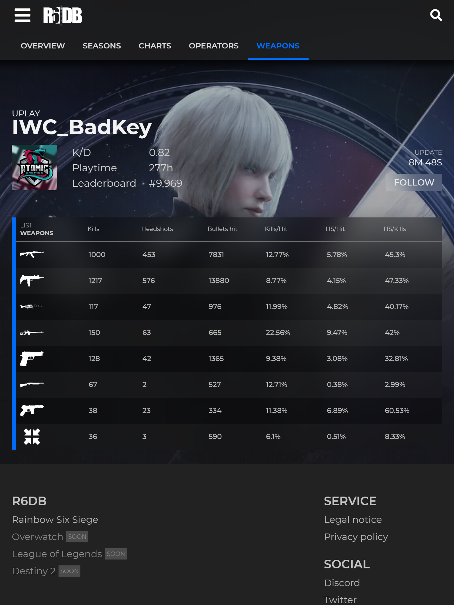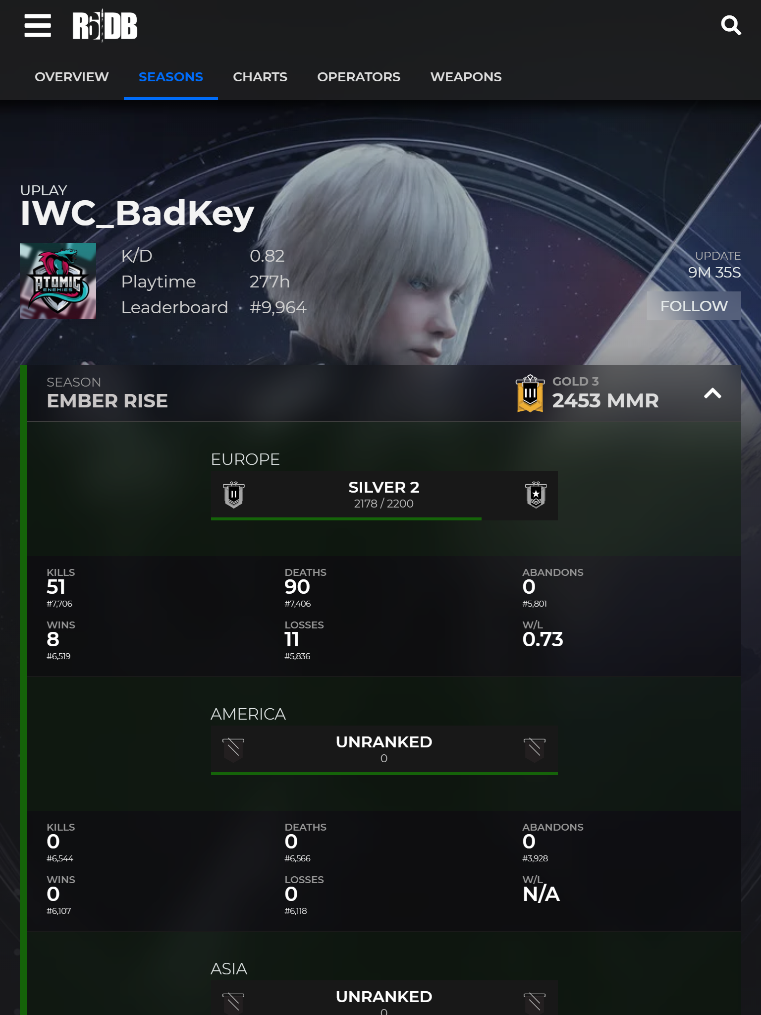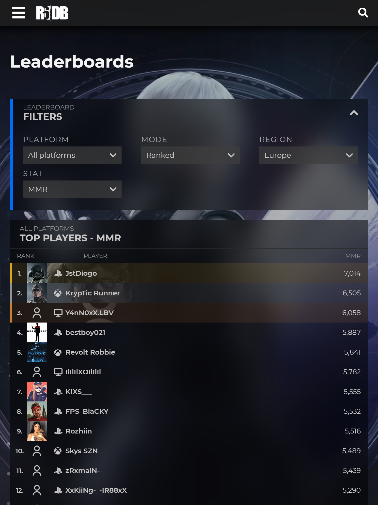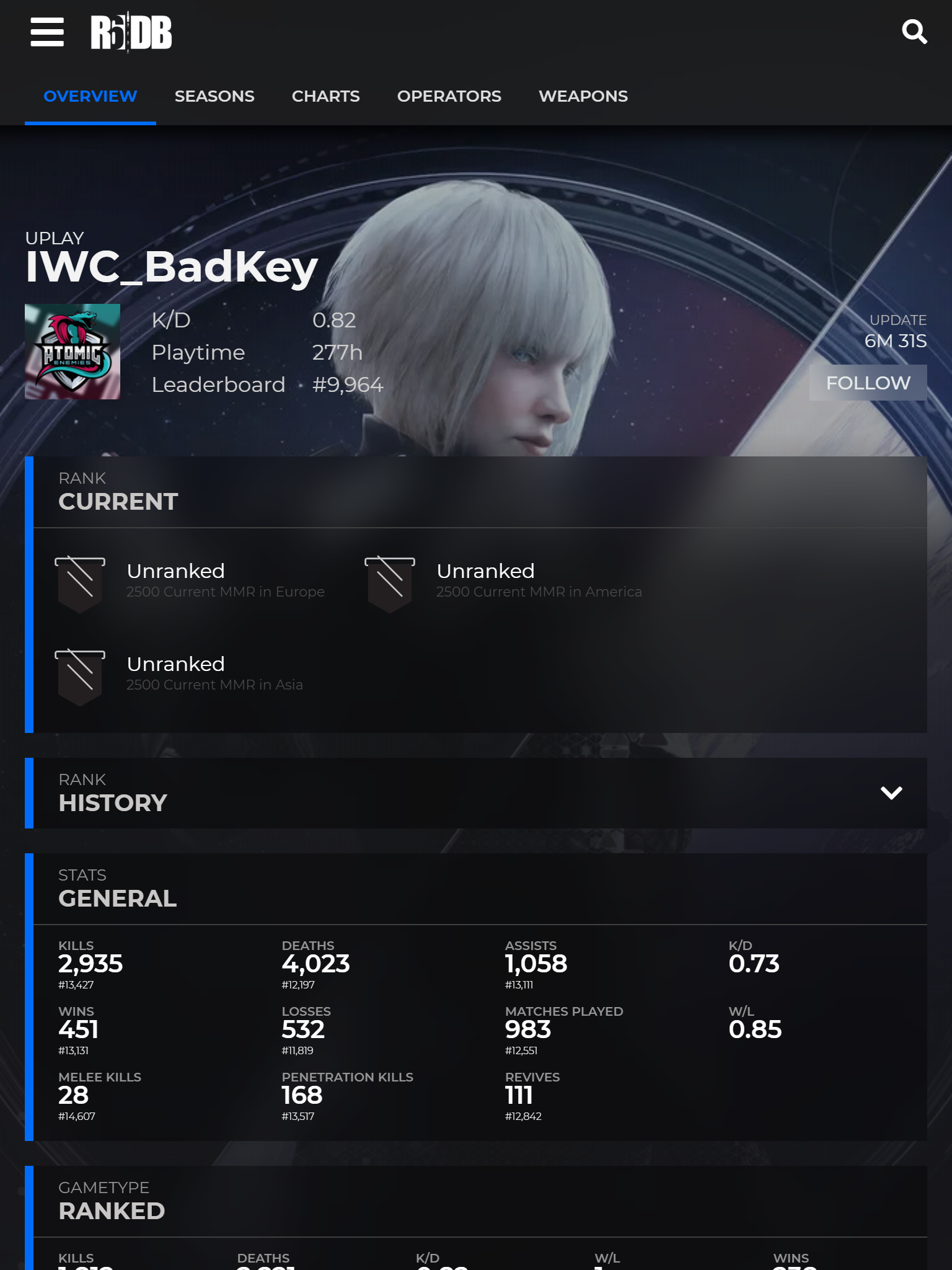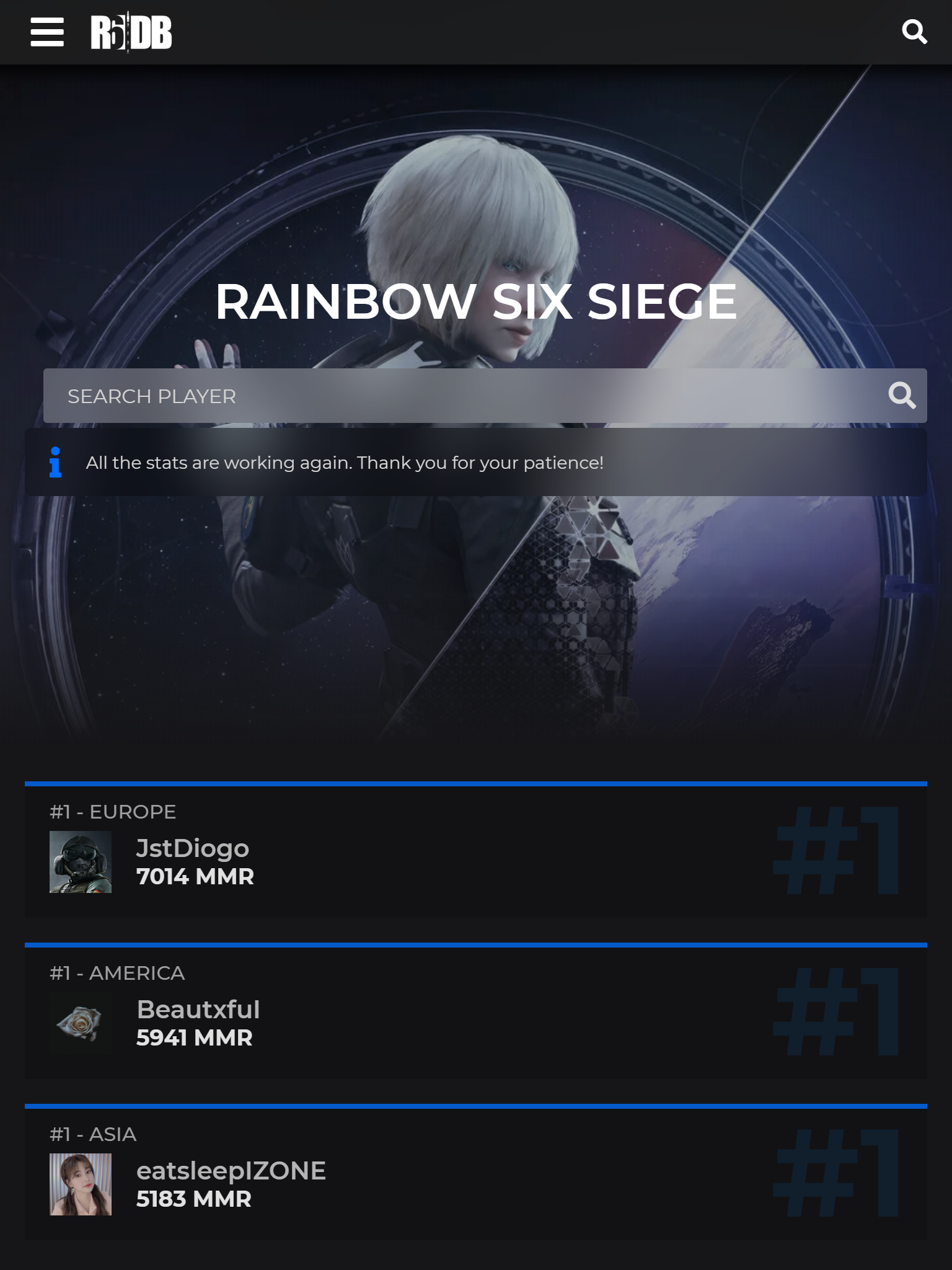 v2.3 by r6db.net | Rainbow Six Siege Stats and Leaderboard